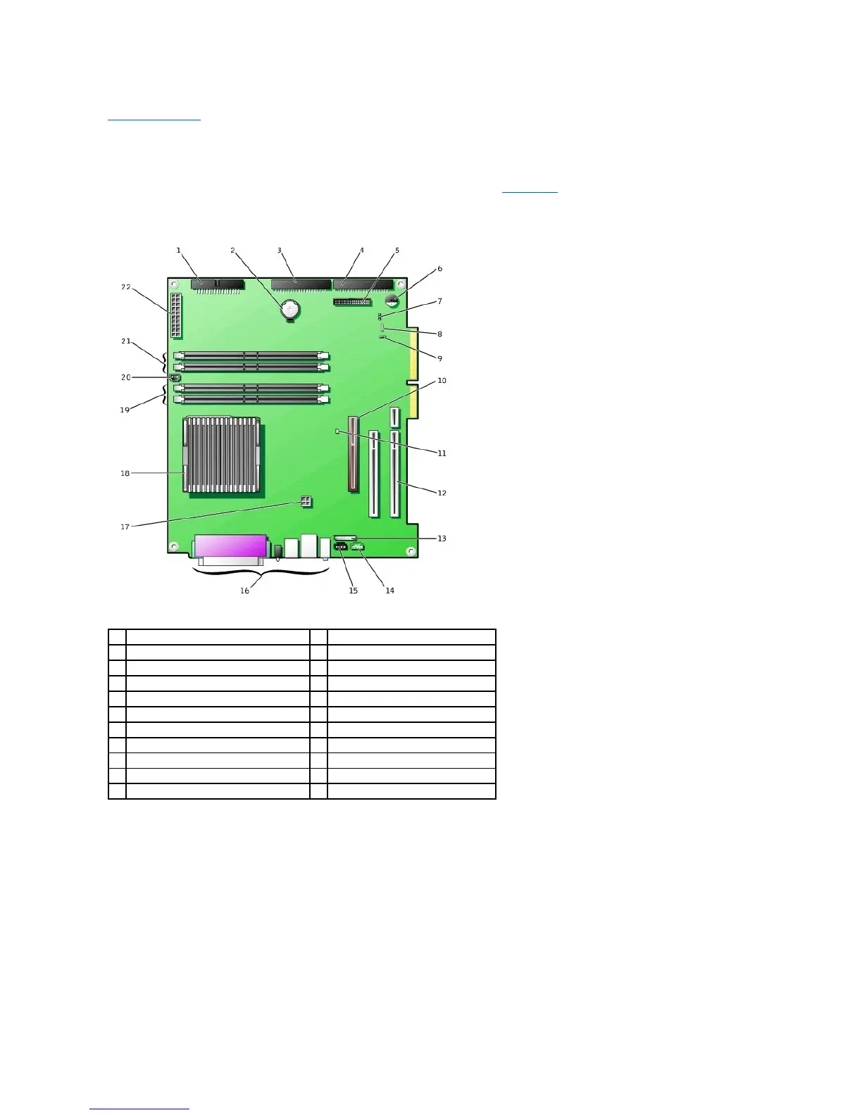 The following figures show the principal connectors and components on the system board. See "System Board" for information on removing the system board.