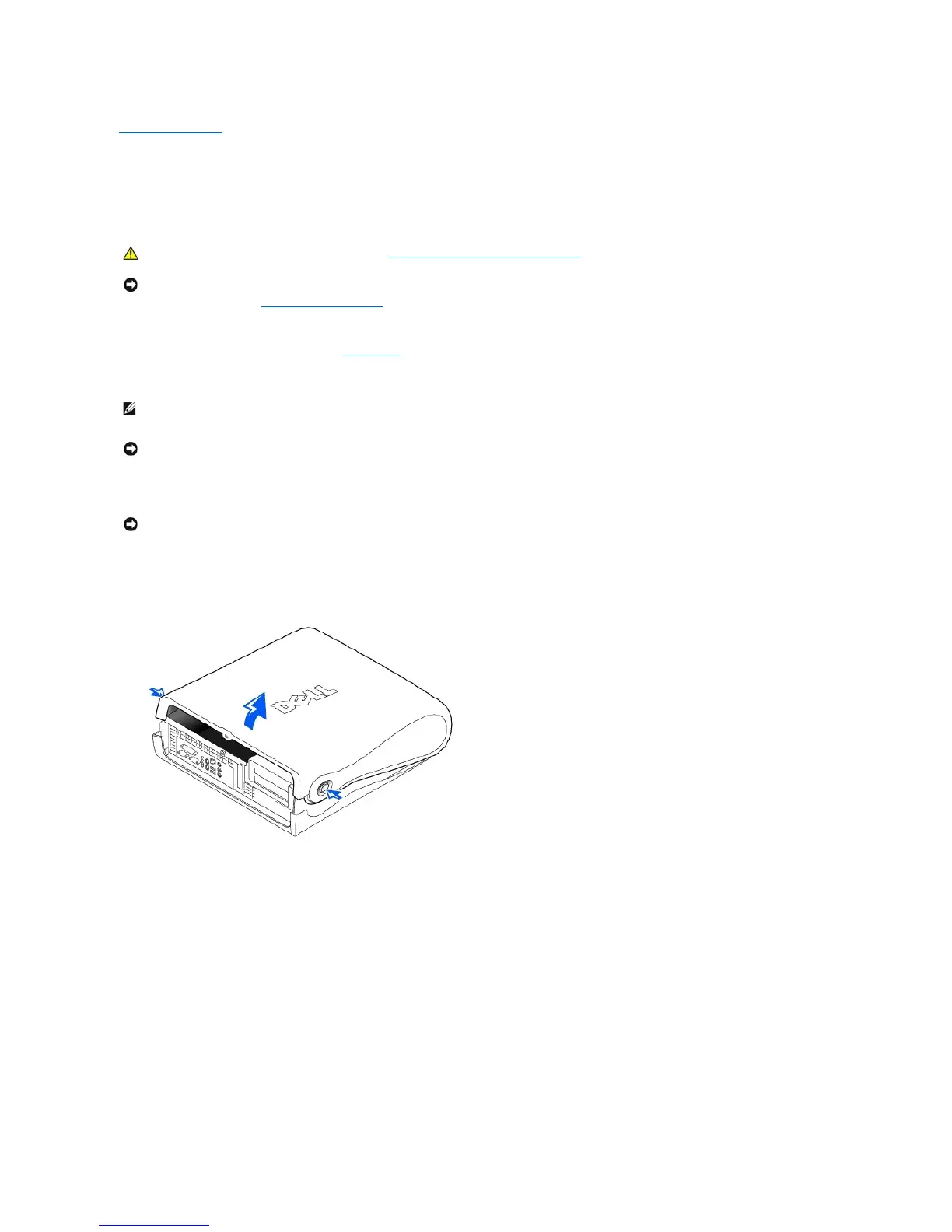 NOTE: On the small desktop computer, remove the stand before you open the computer cover. On the mini-tower computer, place the computer on its