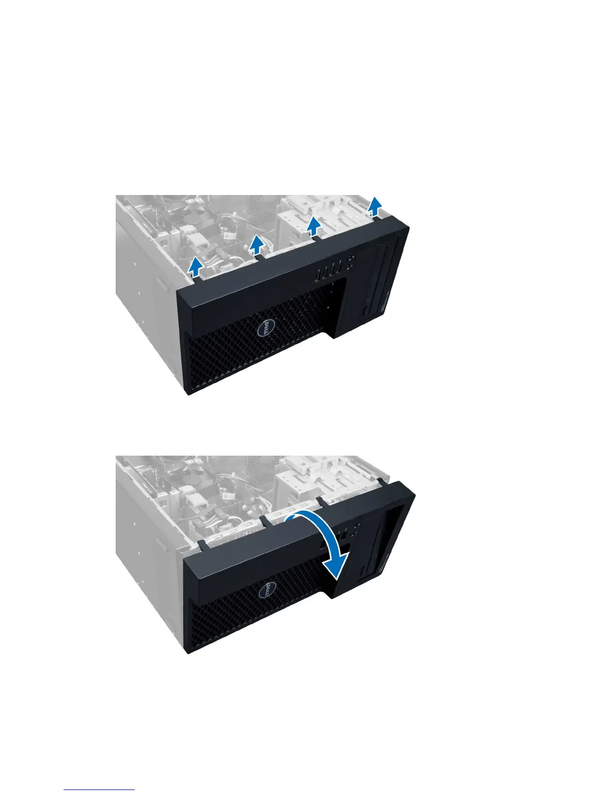 3. Pry the front panel retention clips away from the chassis located at the edge of front panel.