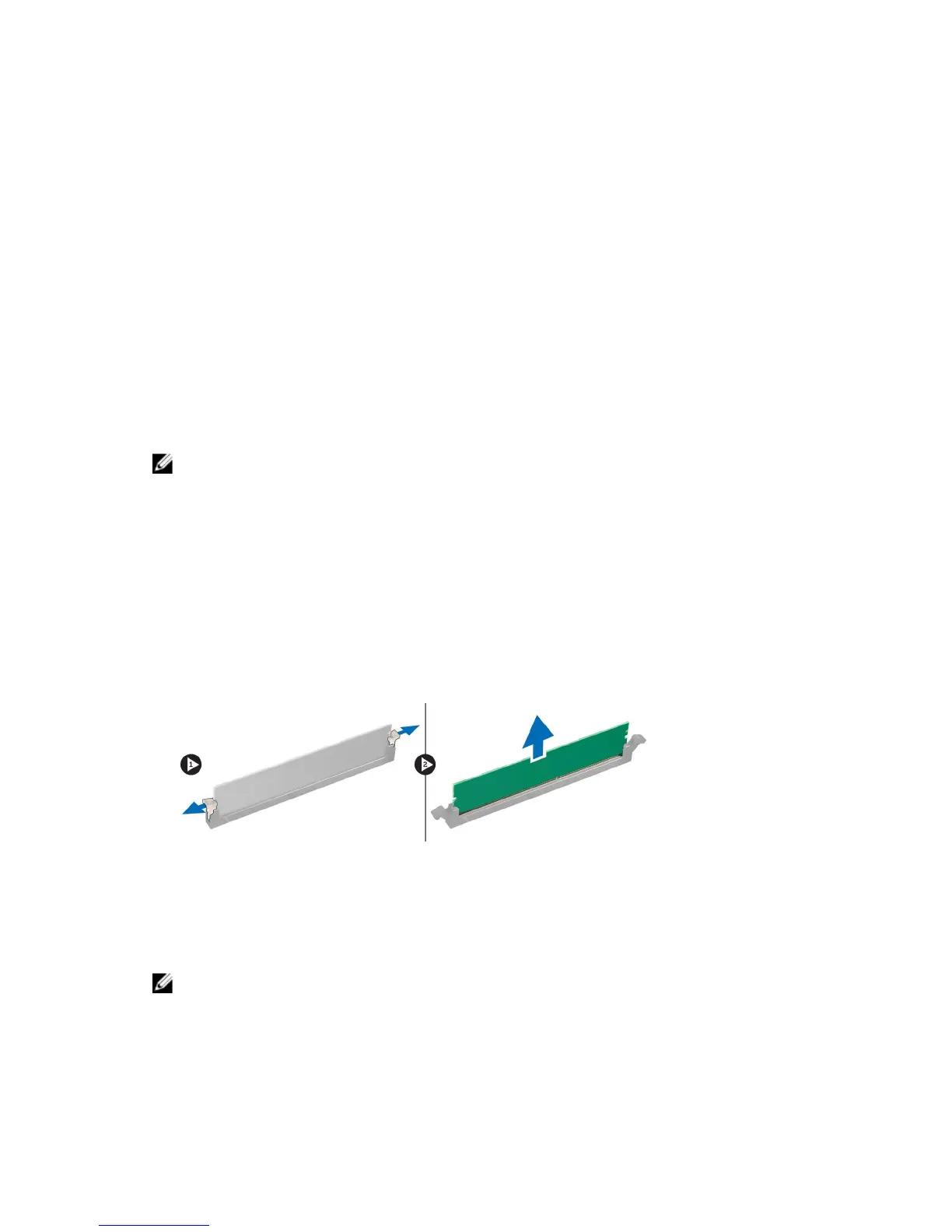 Press down on the memory retention-clips on each side of the memory module, and lift the memory module out of