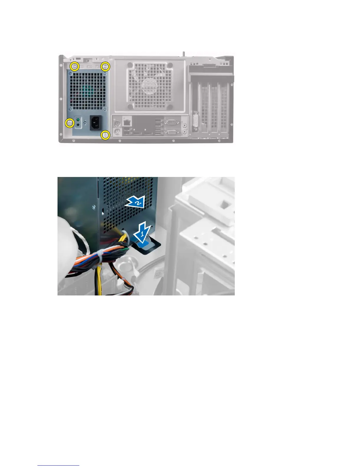 7. Press the release tab at the bottom of the power supply and slide the power supply towards the front of the
