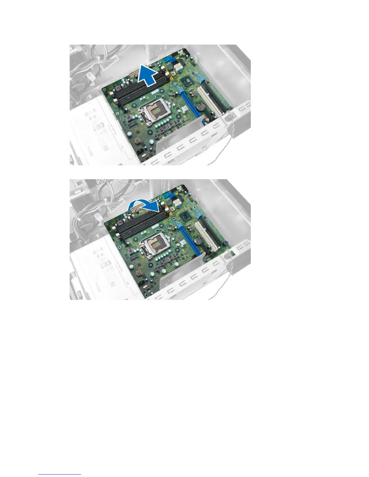6. Tilt the system board to 45–degrees, and lift the system board out of the computer.