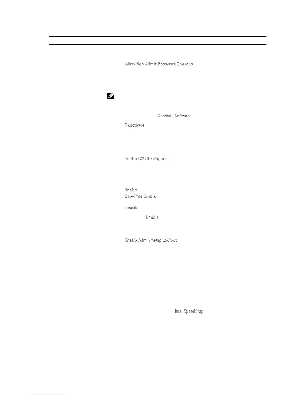 Admin Setup Lockout Allows you to enable or disable the option to enter setup when an admin password is
