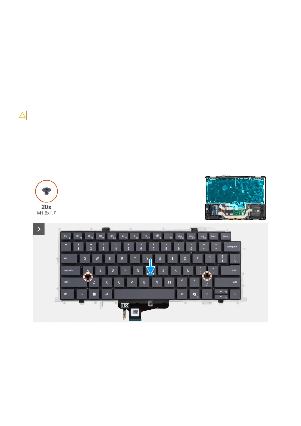 5. Remove the two screws (M2x2) that secure the keyboard to the keyboard bracket from the top side.