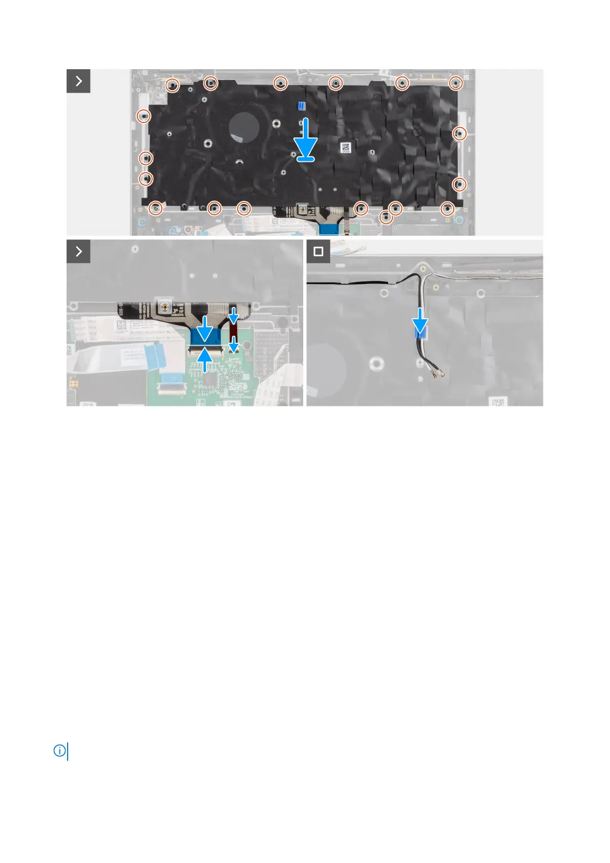 4. Replace the eighteen screws (M1.6x1.7) that secure the keyboard assembly in place.