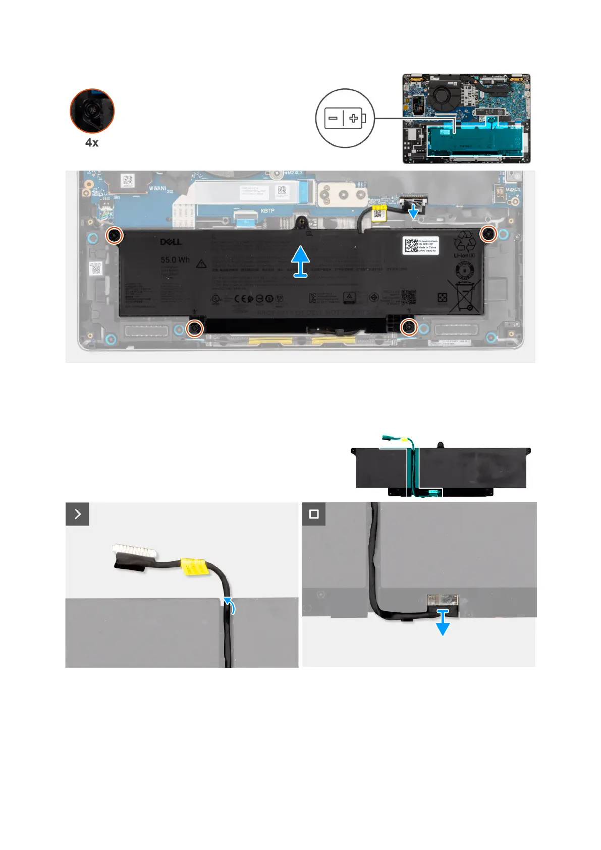 1. Disconnect the battery cable from the battery cable connector (BATT1) on the system board (if not disconnected earlier).