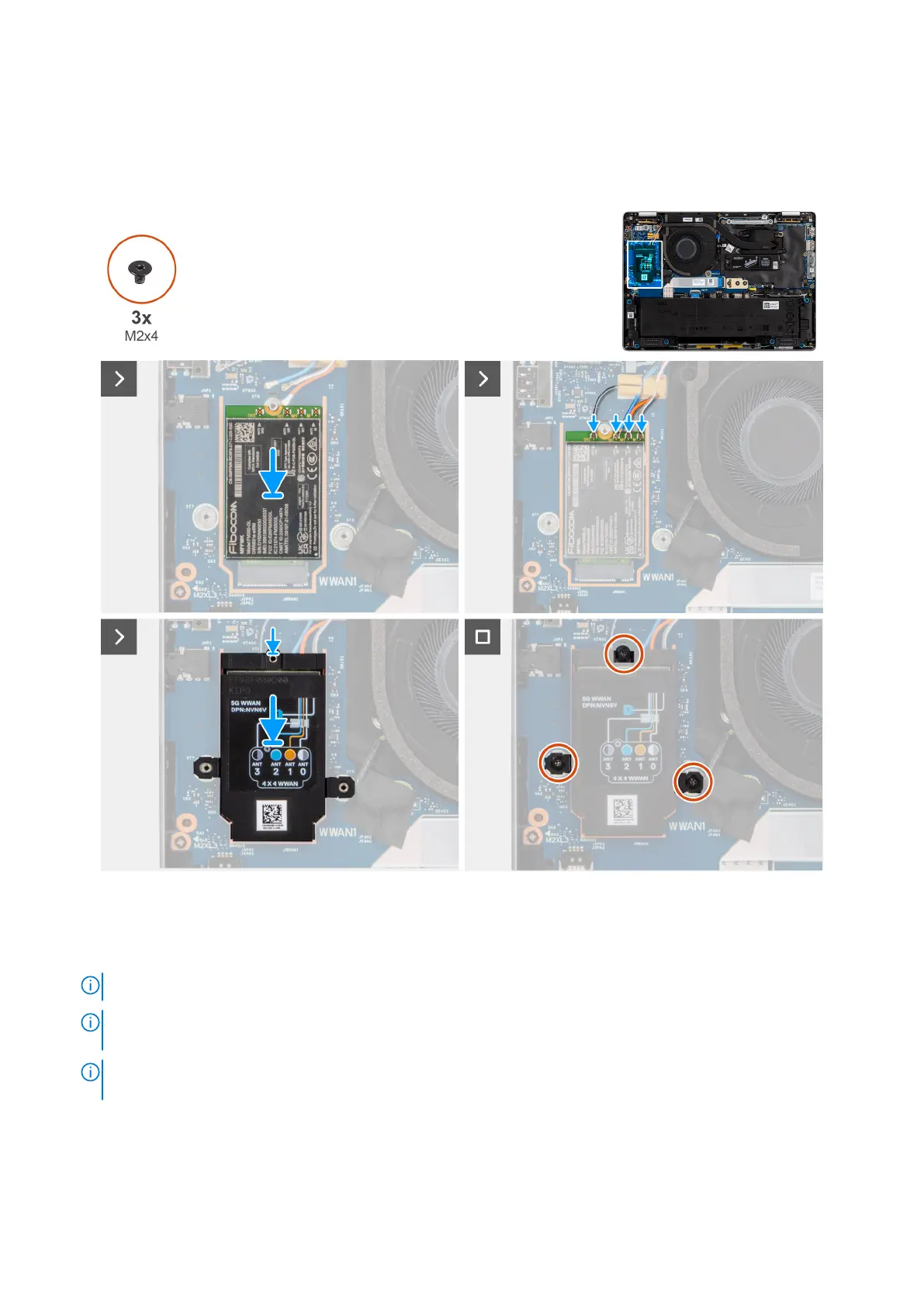 2. Connect the antenna cables to the WWAN card.