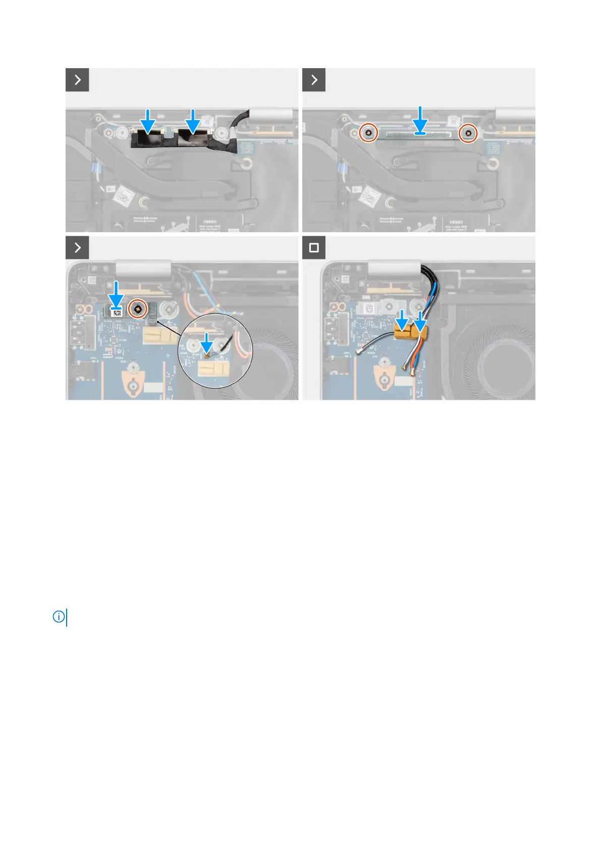 7. Route the power-button cable and WWAN antenna cables through the cable holder.