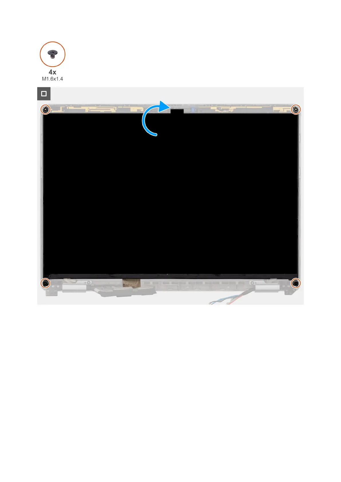 3. Flip over the display panel and replace the four screws (M1.6x1.4) to secure it in place.
