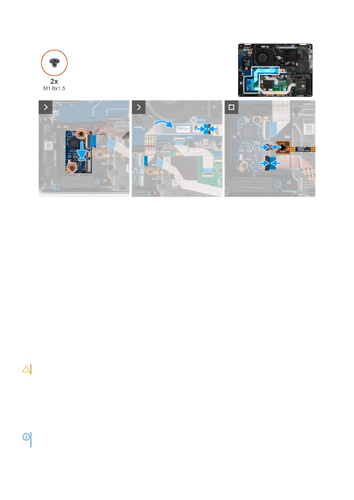 2. Replace the two screws (M1.6x1.5) that secure the USH daughter board in place.