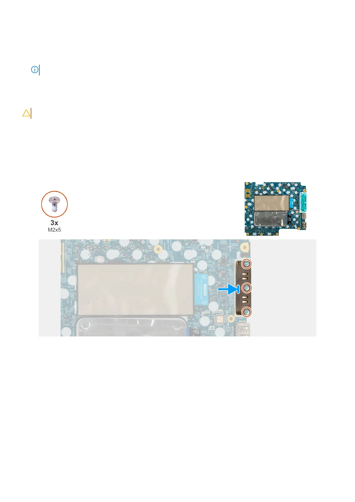 1. Remove the three screws (M2x5) that secures the USB-C connector module to the bottom side of the system board.