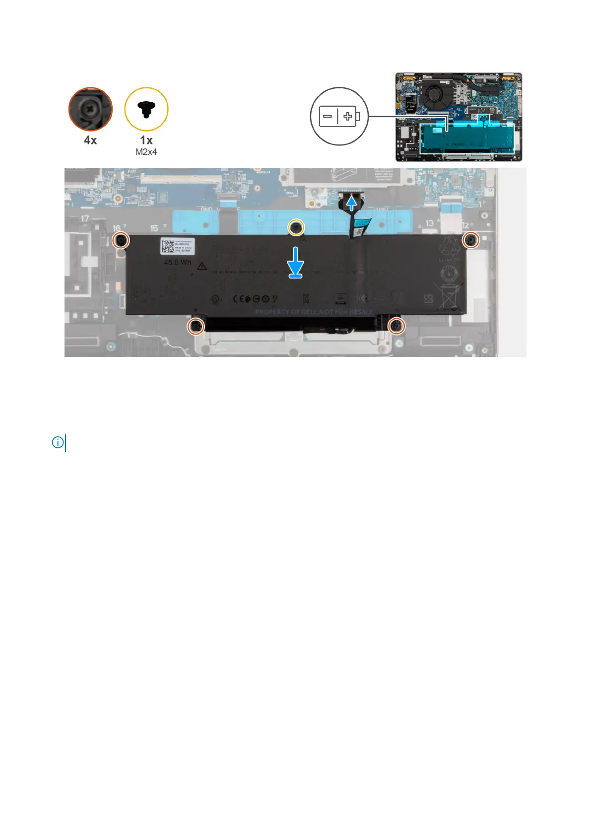 6. Replace the screw (M2x4) that secures the battery to the palm-rest assembly.