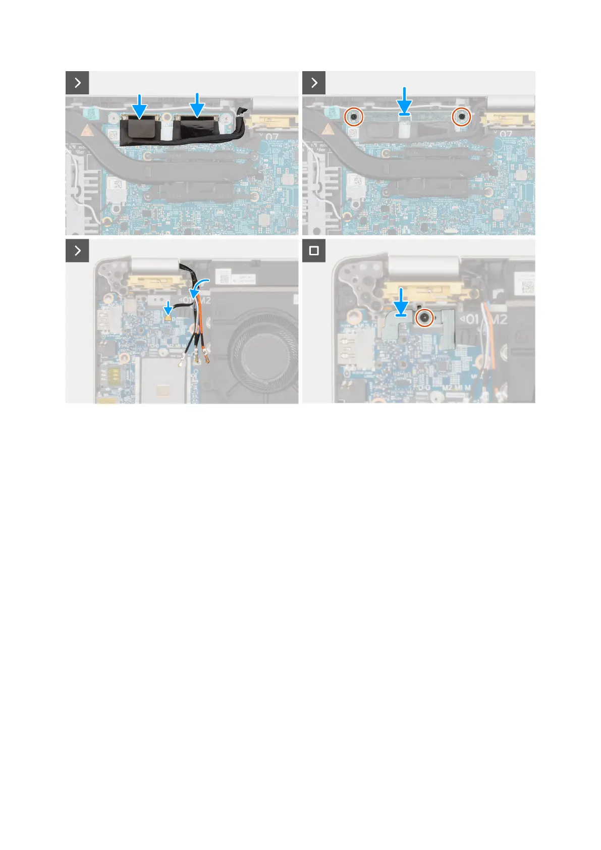 6. Route the antenna cables (where applicable) from the routing guides on the system board.