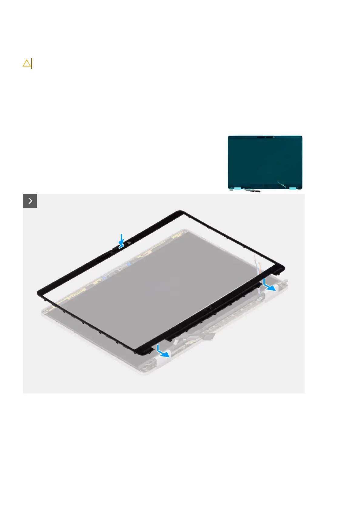The following images indicate the location of the display bezel and provide a visual representation of the installation procedure.