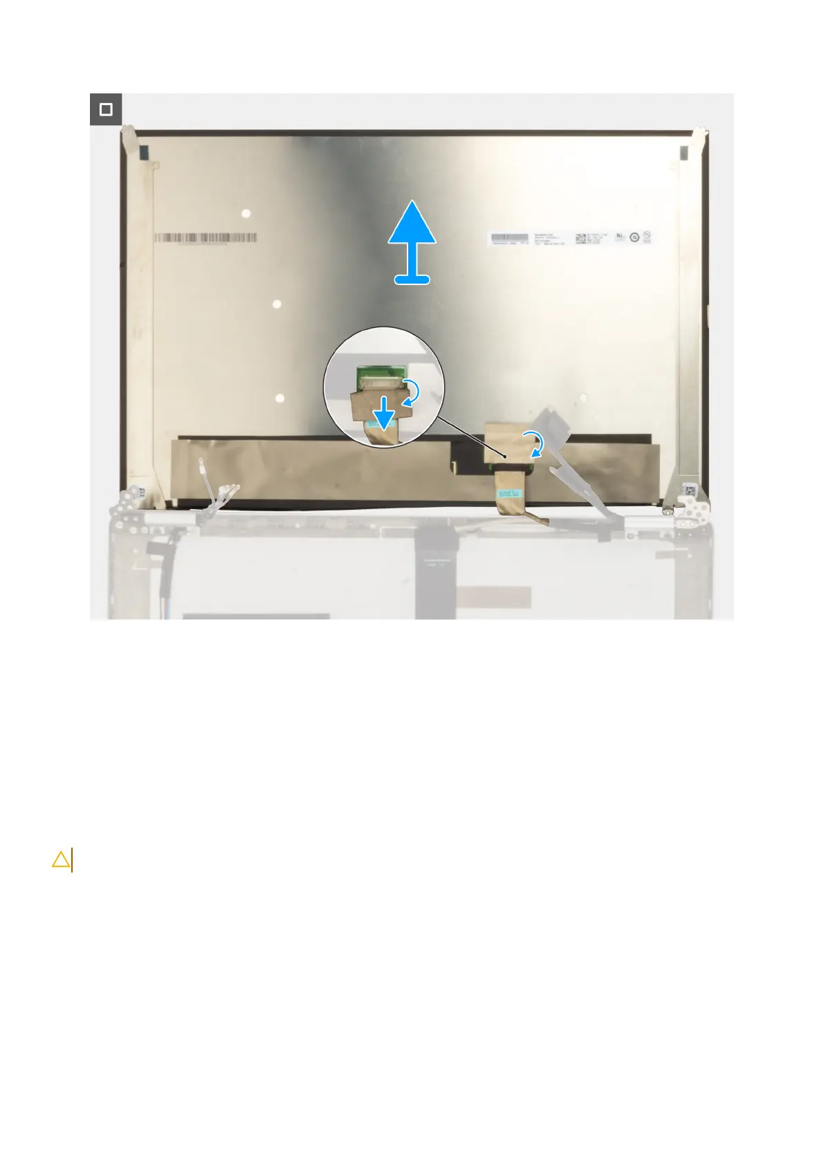 4. Open the latch and disconnect the cable from the connector on the display panel.