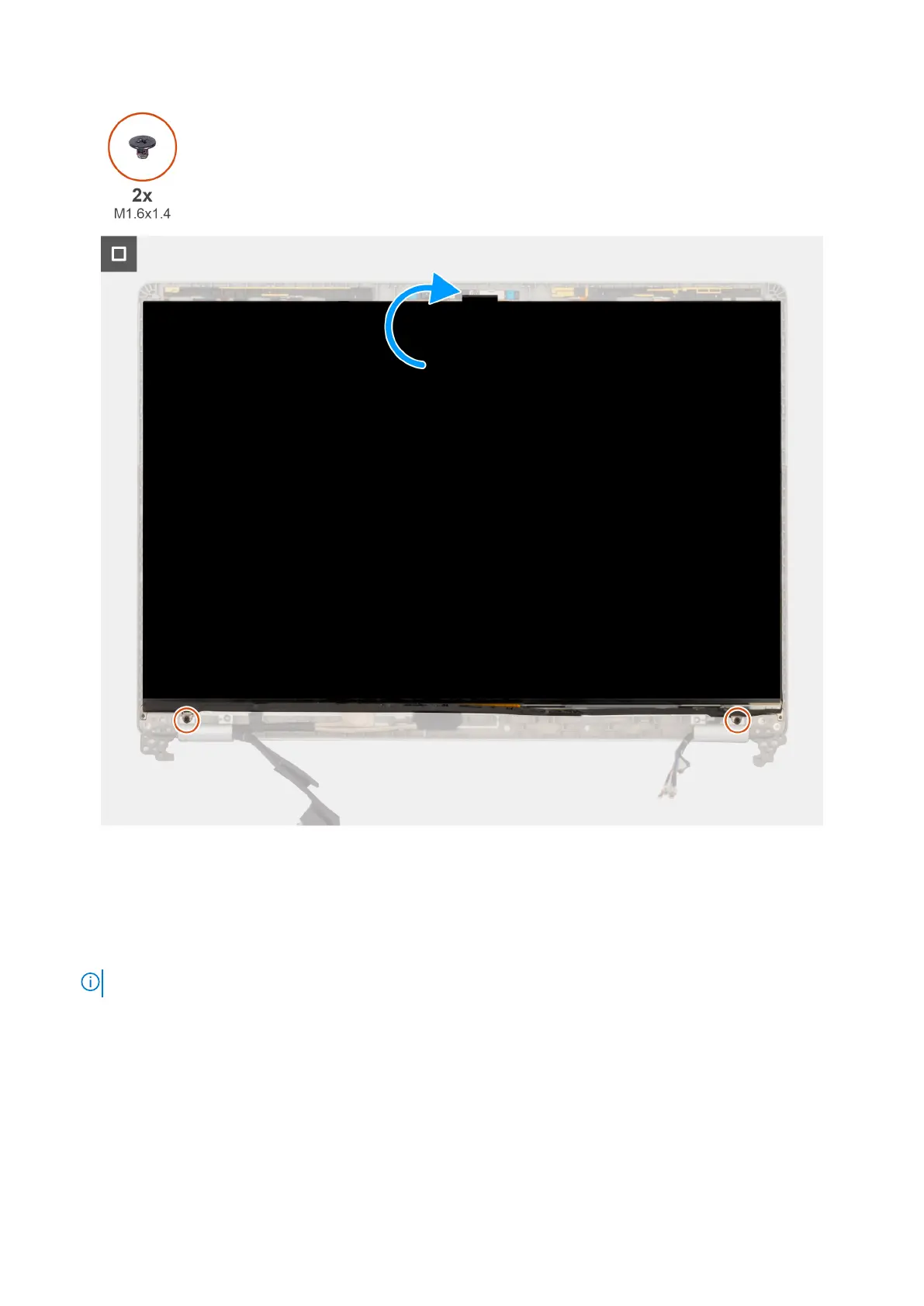4. Replace the two screws (M1.6x1.4) to secure the display panel to the display back cover.