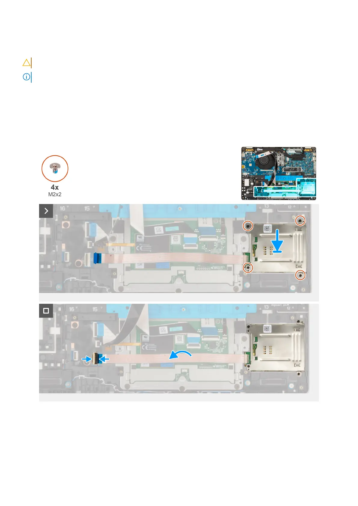 2. Replace the four screws (M2x2) that adheres the smart-card reader to the palm-rest assembly.
