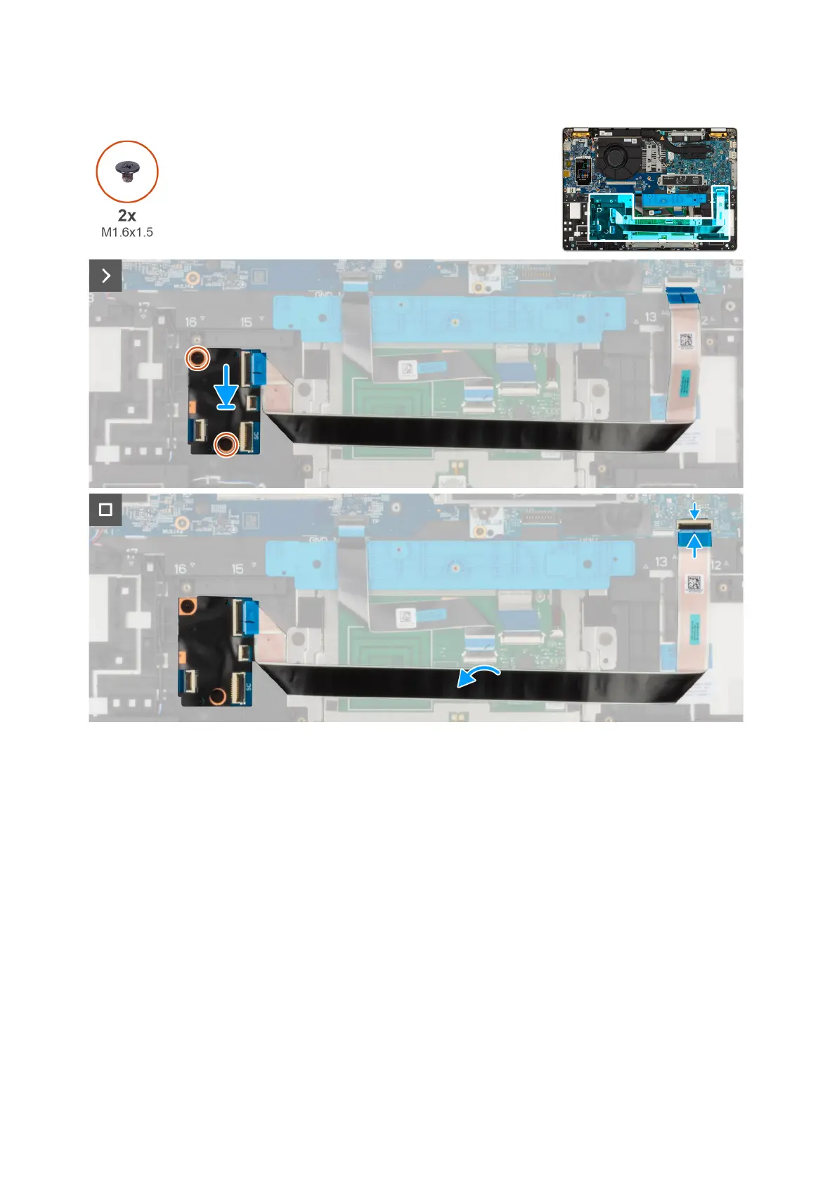 2. Replace the two screws (M1.6x1.5) that secure the USH daughter board in place.