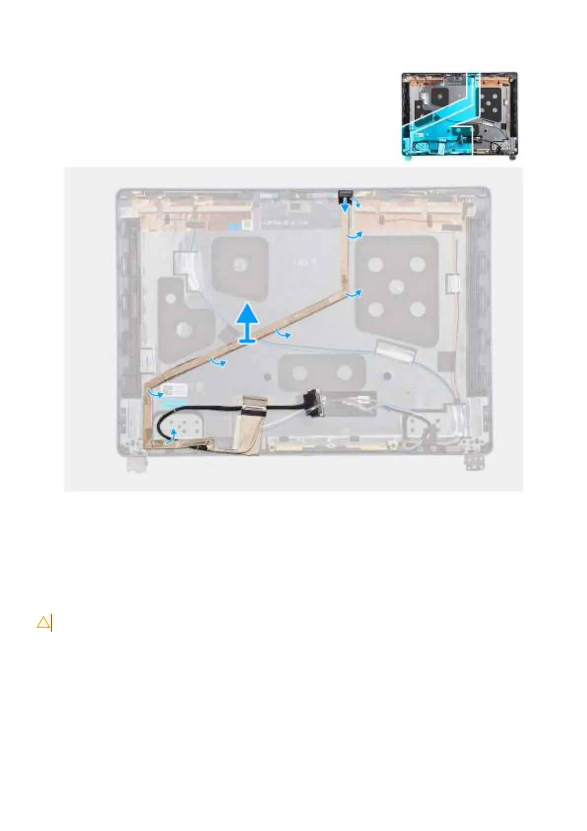 2. Carefully peel back and remove the display cable from the display back-cover and antenna assembly.