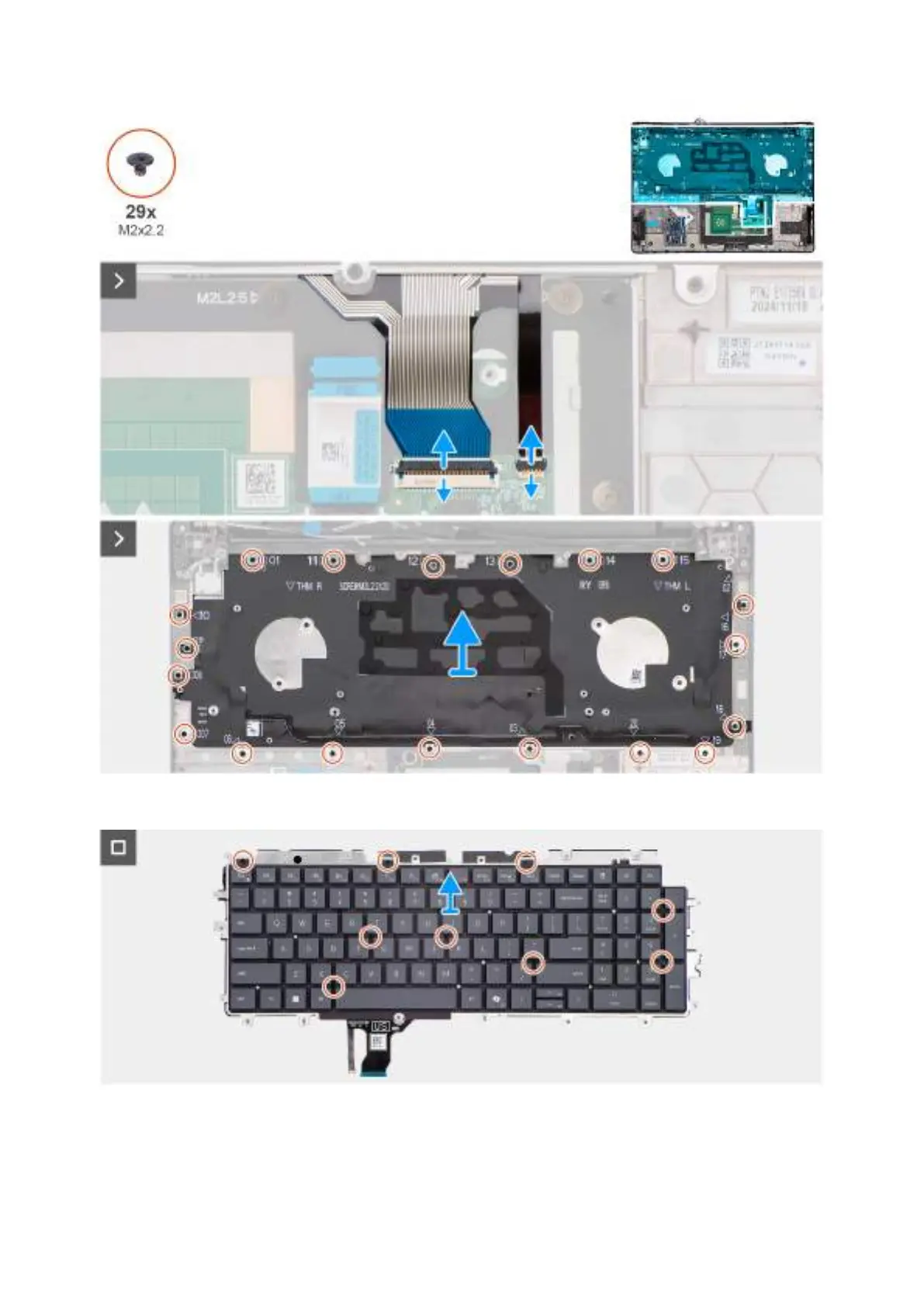 1. Disconnect the keyboard cable from the connector (KEYBOARD) on the touchpad board.