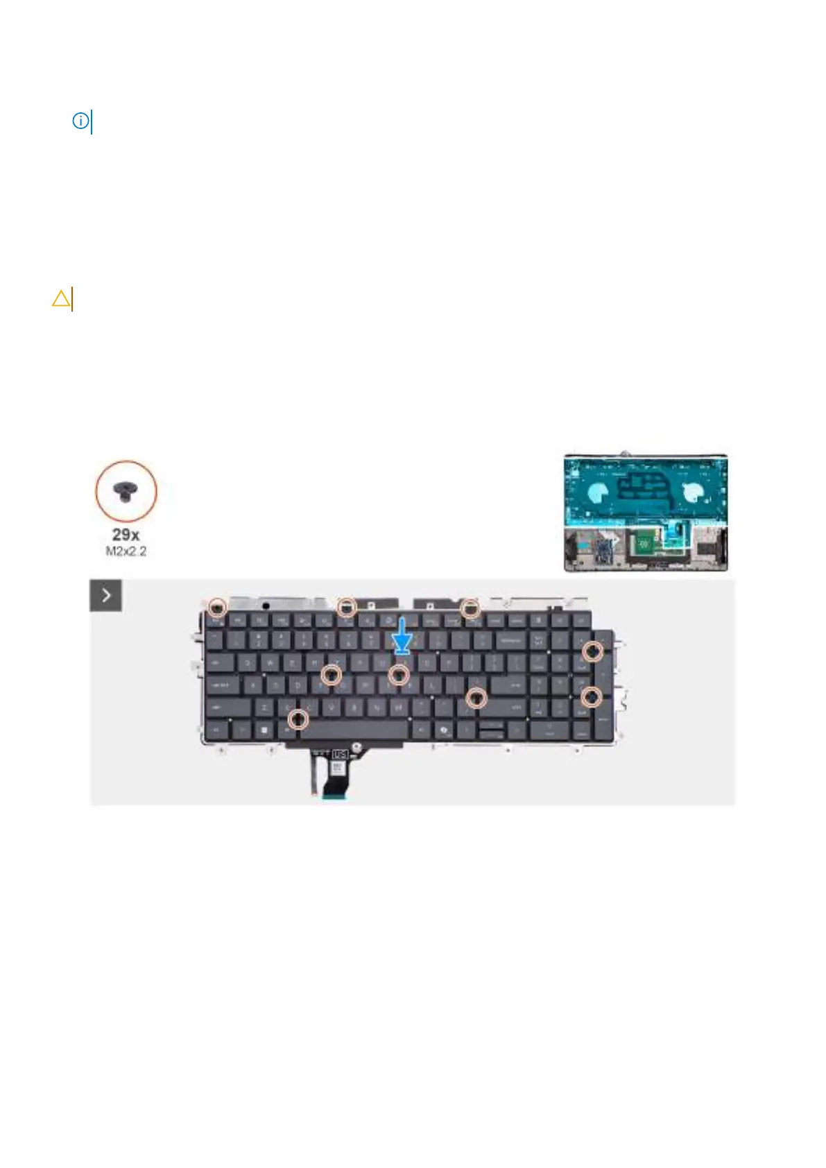 5. Remove the nine screws (M2x2.2) that secure the keyboard to the keyboard bracket.