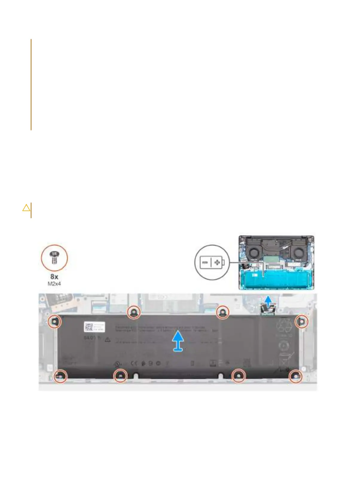 2. Remove the eight screws (M2x4) that secure the battery to the battery frame.