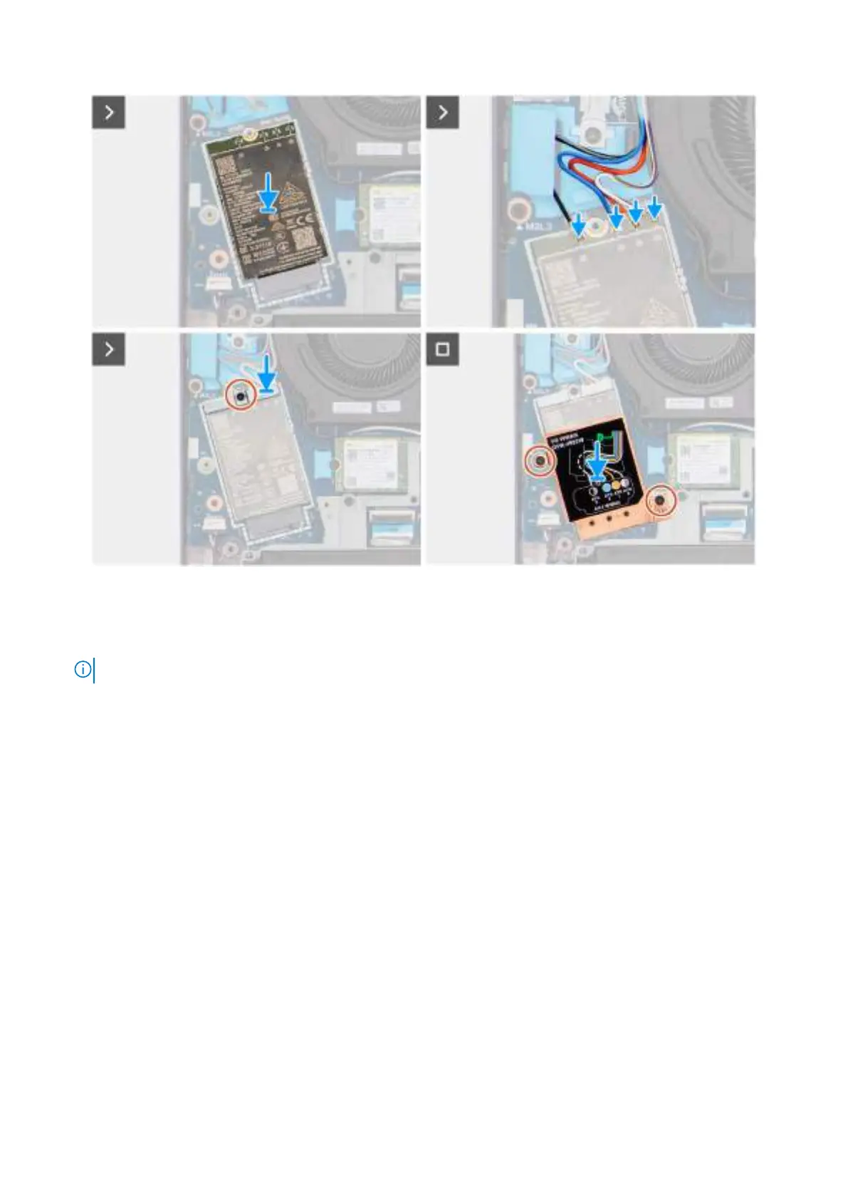 1. Ensure that the reusable Mylar sheet with thermal pads is placed beneath the WWAN module.