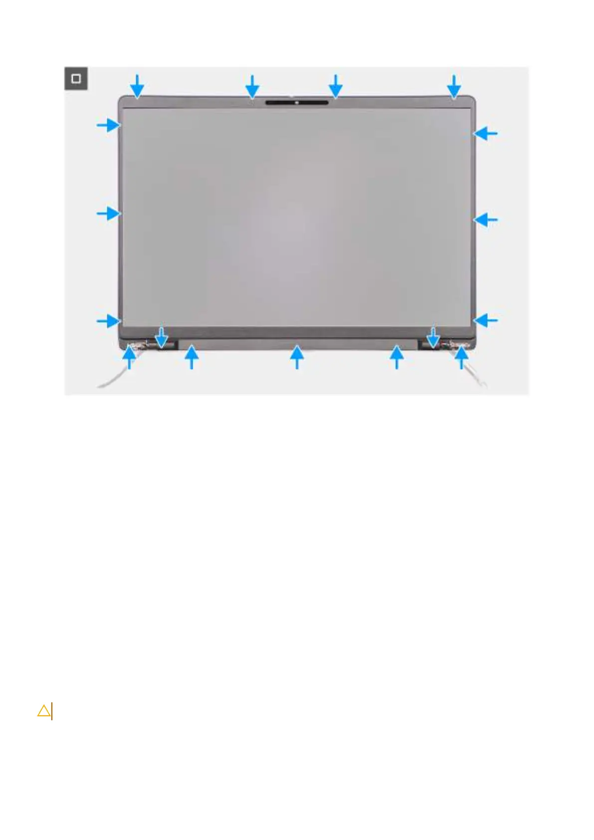 5. Starting from the bottom corner, press the display bezel and work around the entire bezel until it snaps onto the display