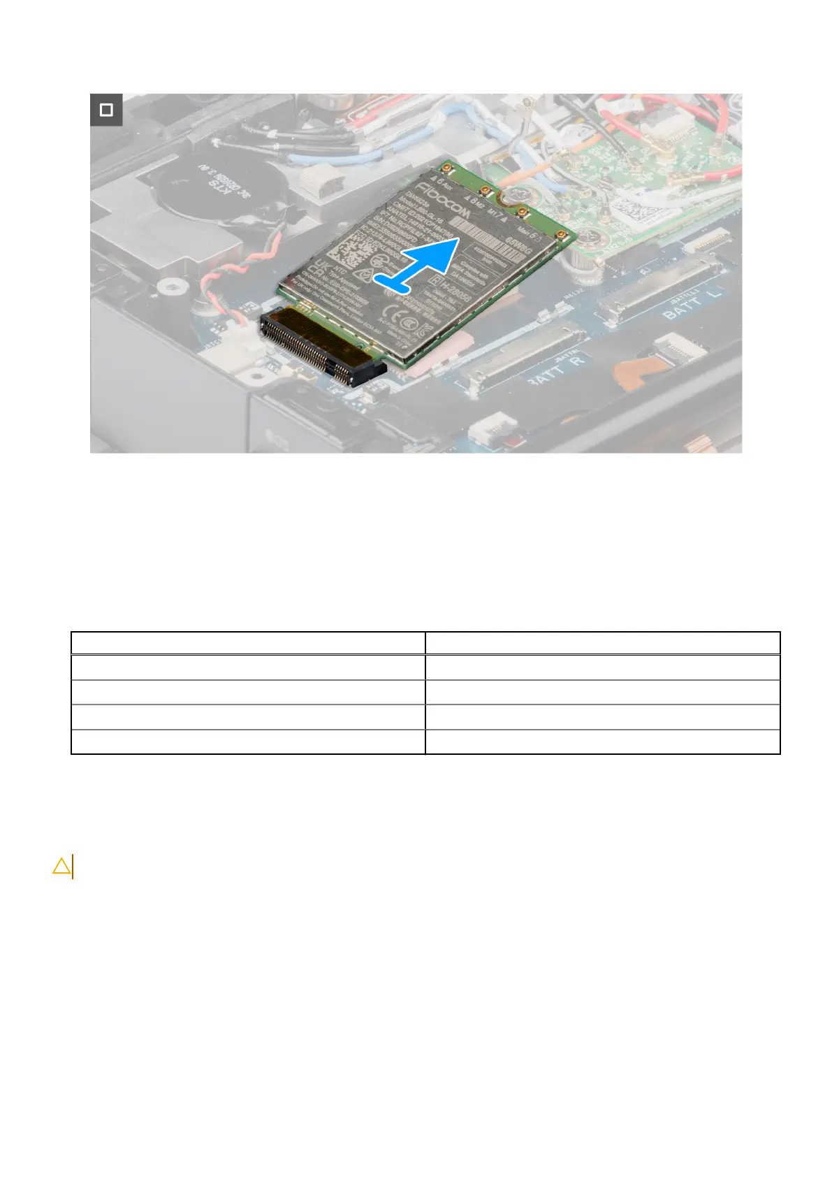 4. Disconnect all the antenna cables from the WWAN card.