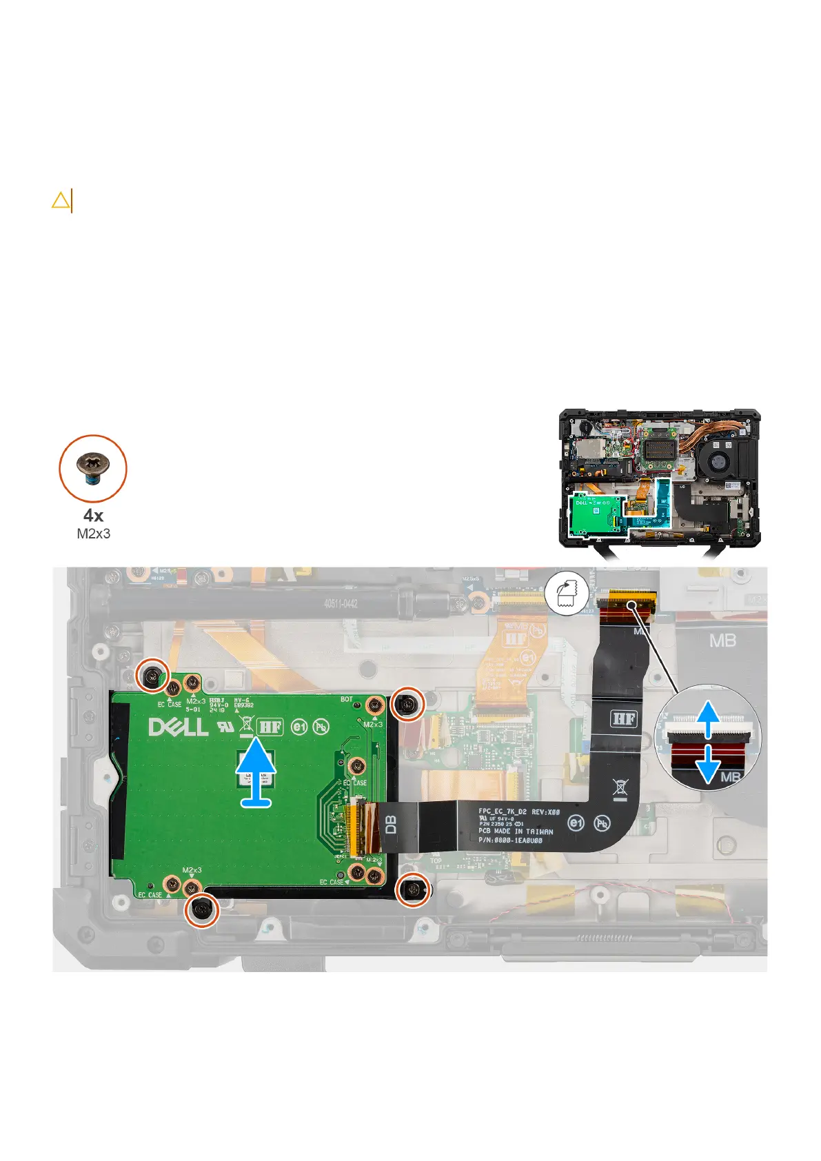 1. Disconnect the express-card reader flat-printed cable from its connectors on the system board.