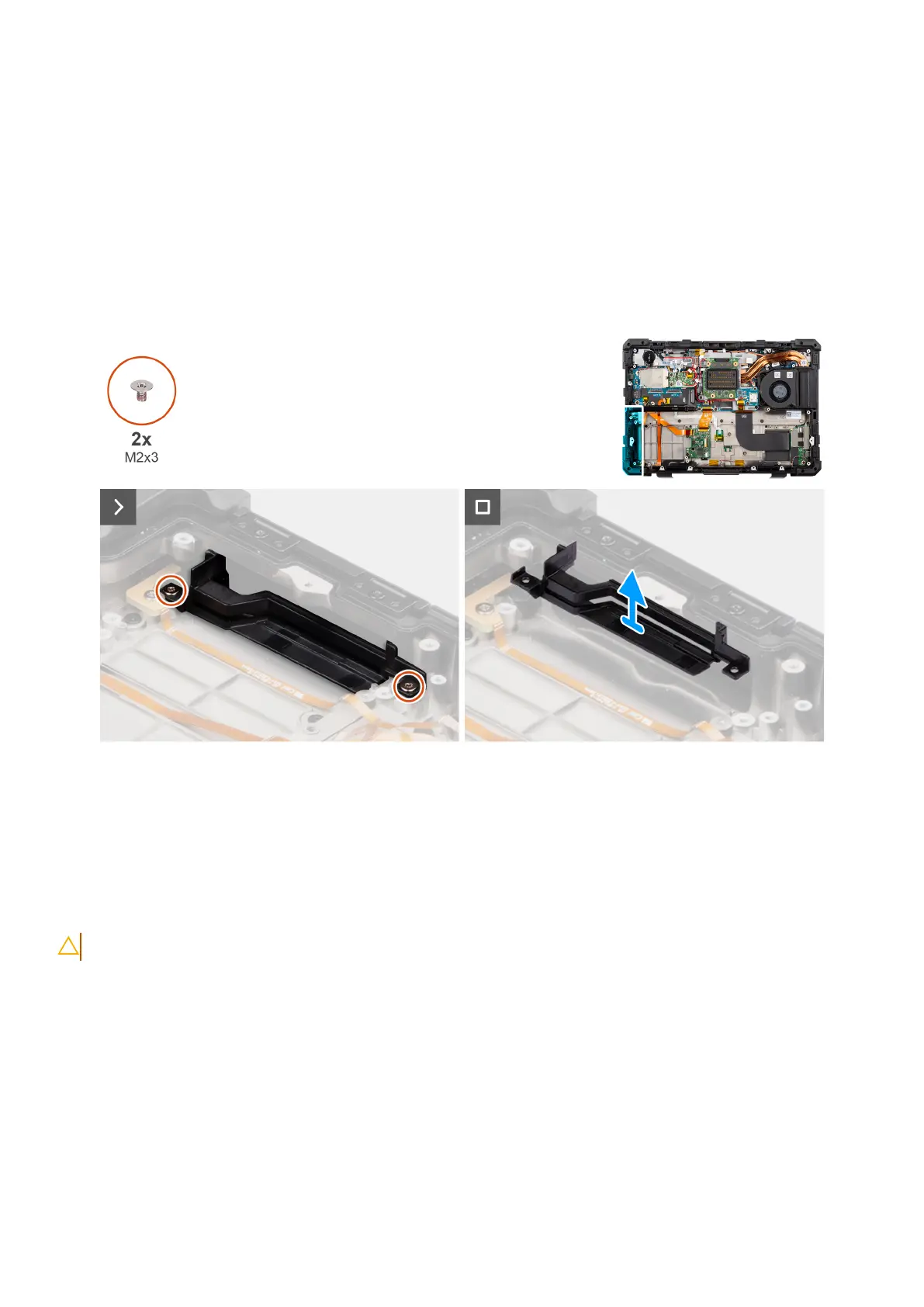 1. Remove the two (M2x3) screws that secure the smart-card and express-card reader bracket to the computer chassis.