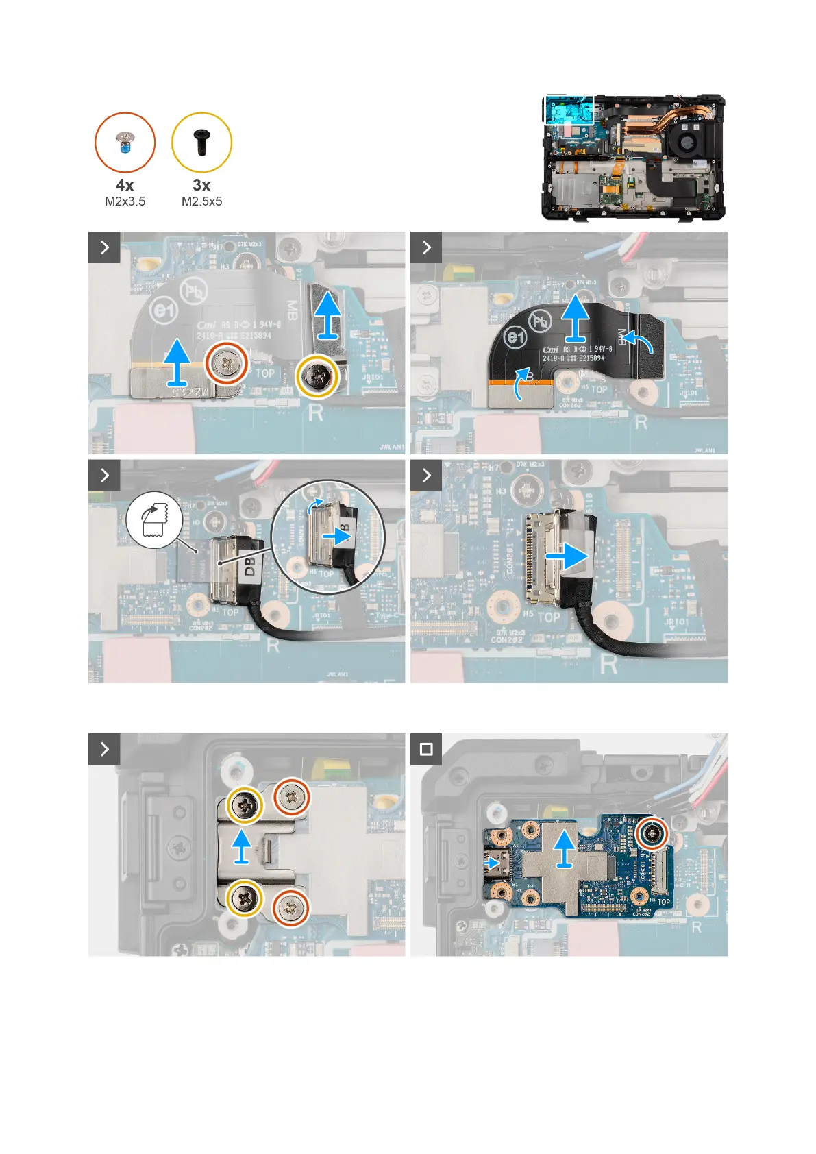 1. Remove the (M2x3.5) and (M2.5x5) screw that secures the flat printed cable holder to the right Type-C board.