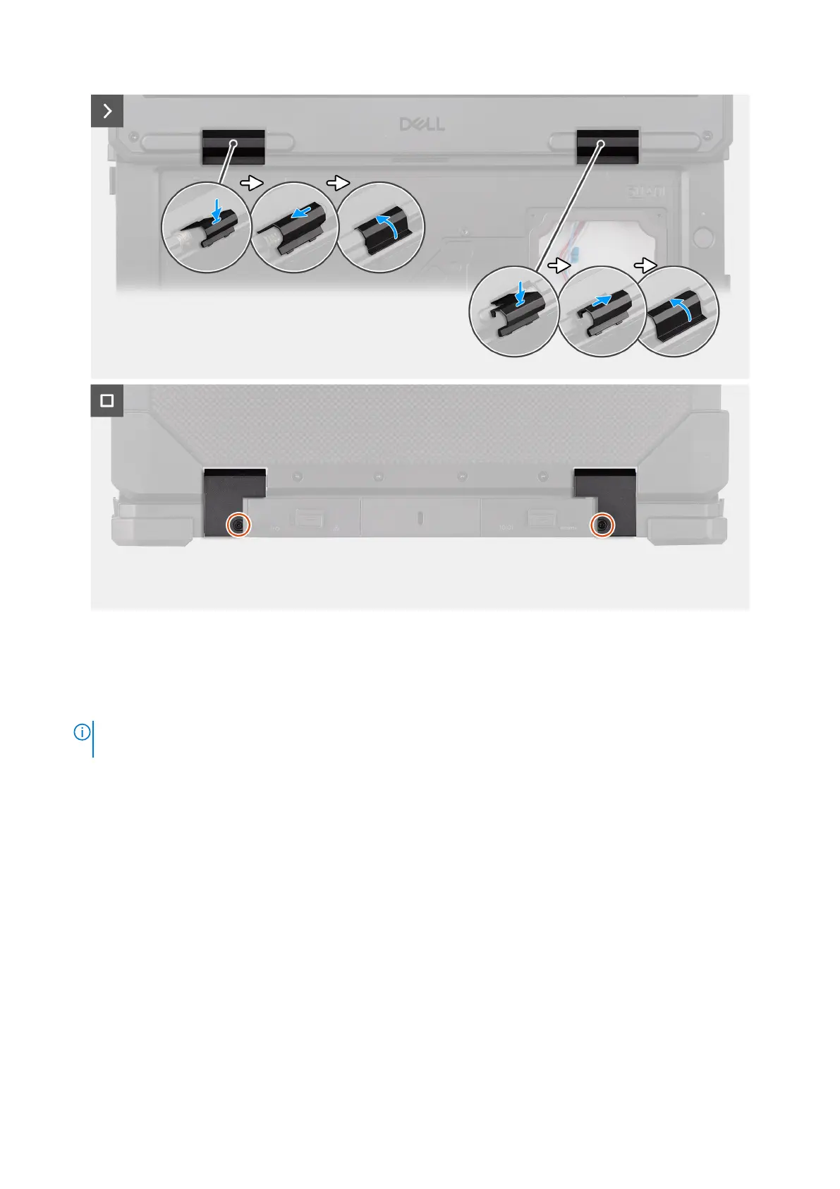 4. Replace the two (M2.5x5) screws that secure the left/right hinge covers to the computer chassis.