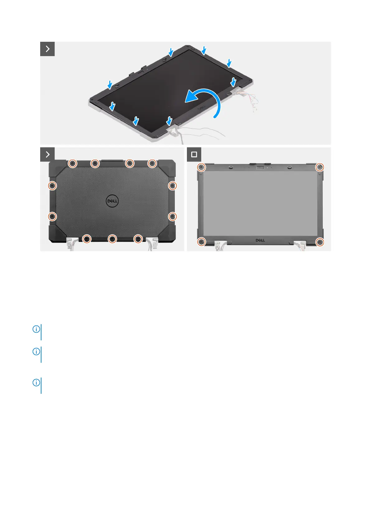 Ensure that the display-panel assembly is placed on a flat surface when replacing the screws to avoid light