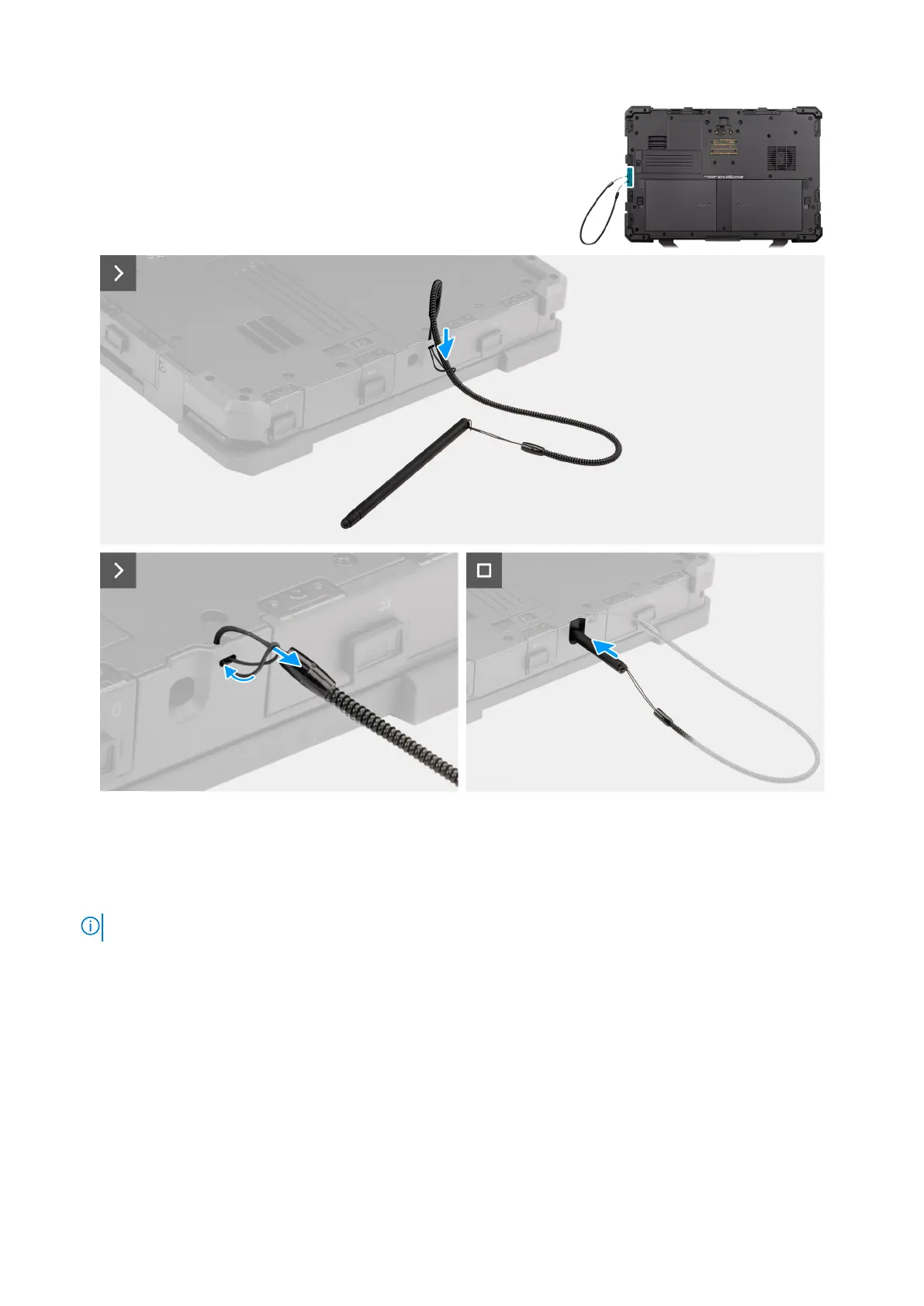 1. Slip the stylus through the hole to create a knot that holds the tether to the computer chassis.