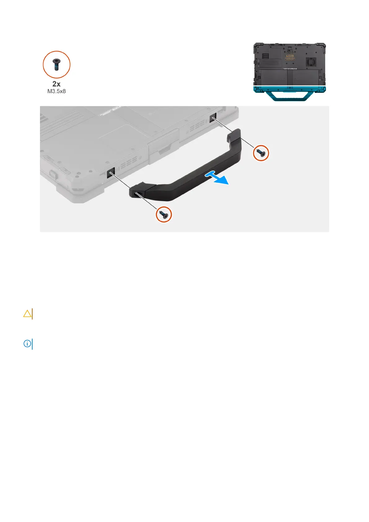 1. Remove the two (M3.5x8) screws that secure the handle to the computer.