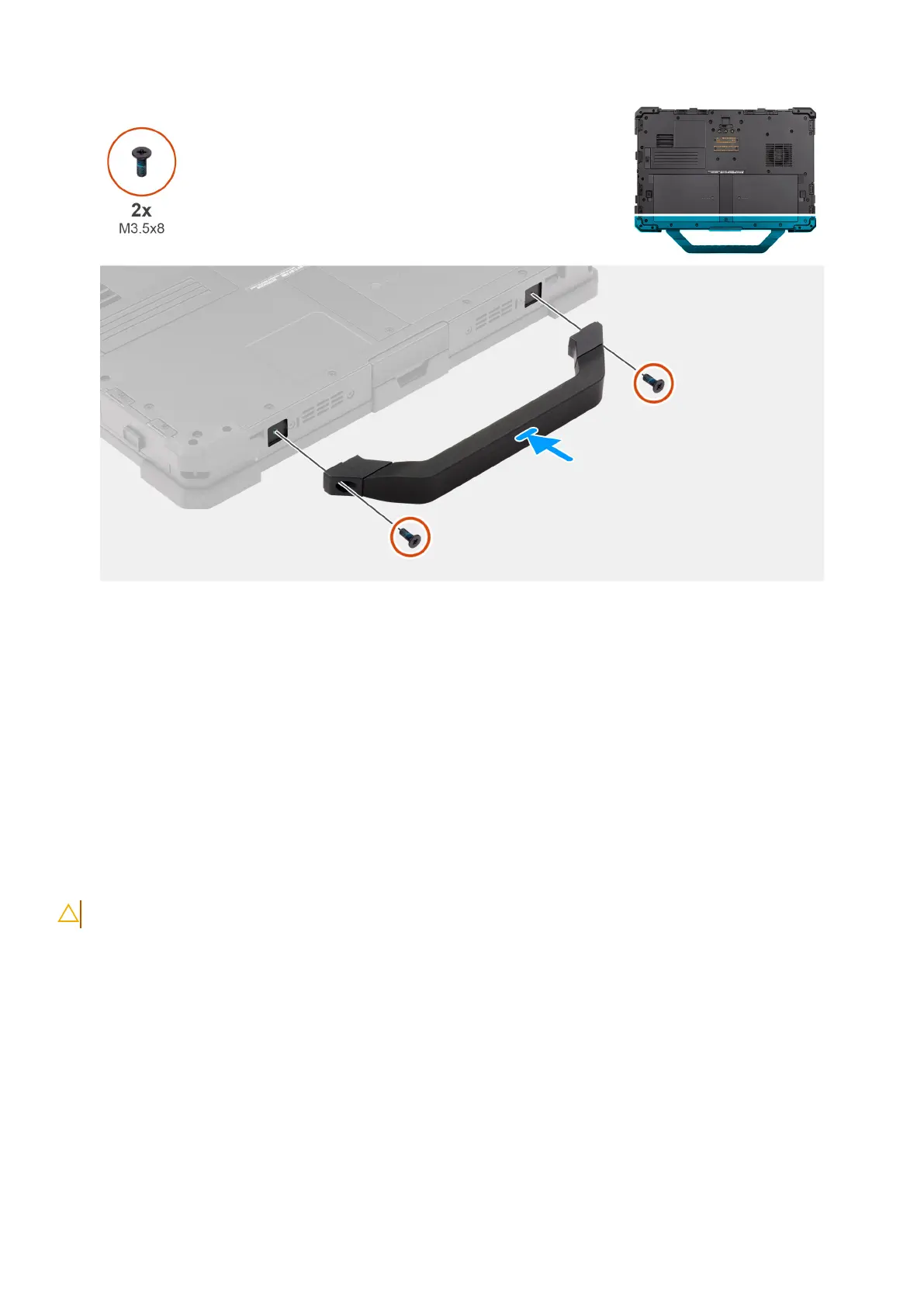 2. Replace the two (M3.5x8) screws to secure the handle to the computer.