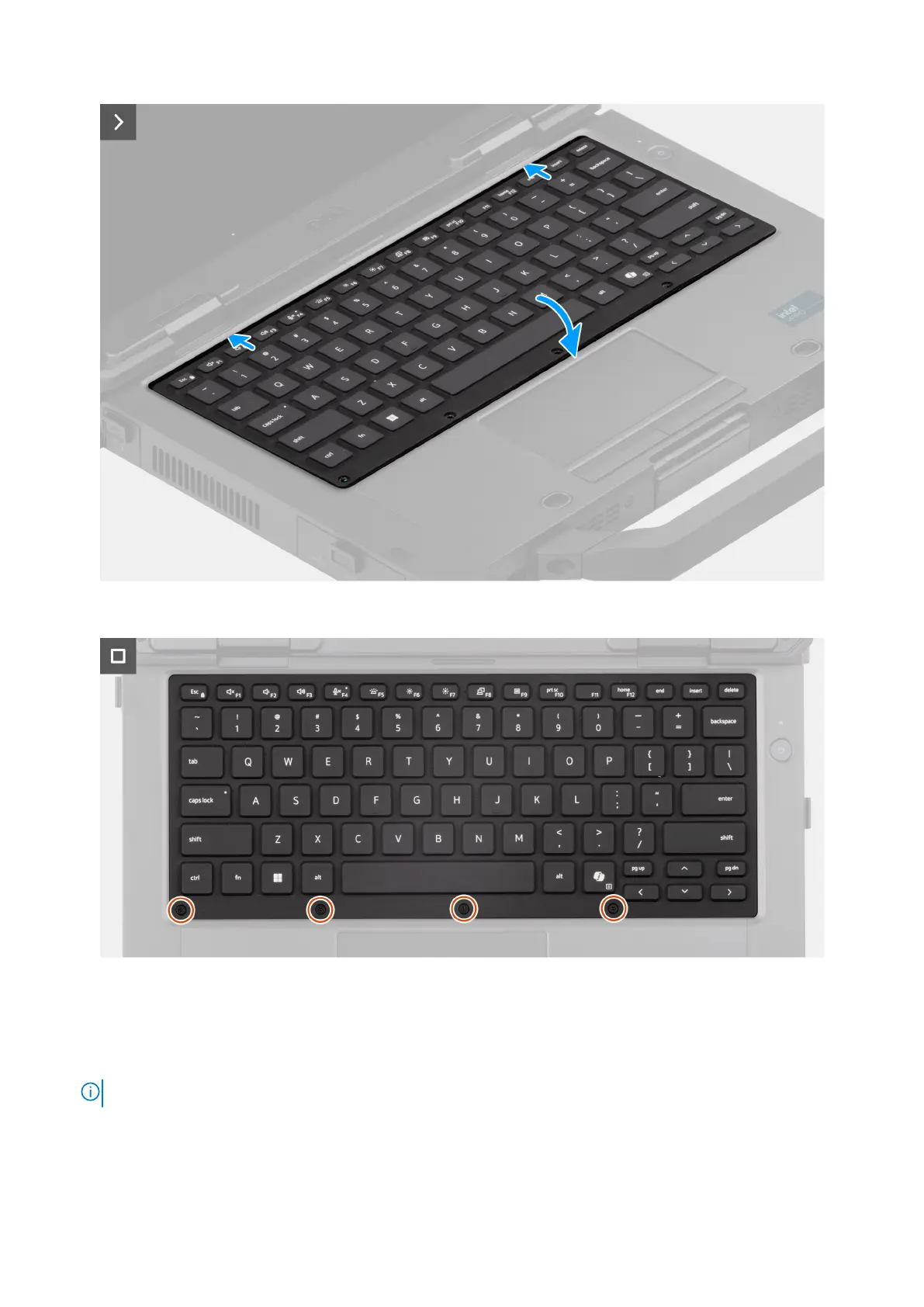 5. Replace the six (M2.5x5) screws to secure the keyboard.