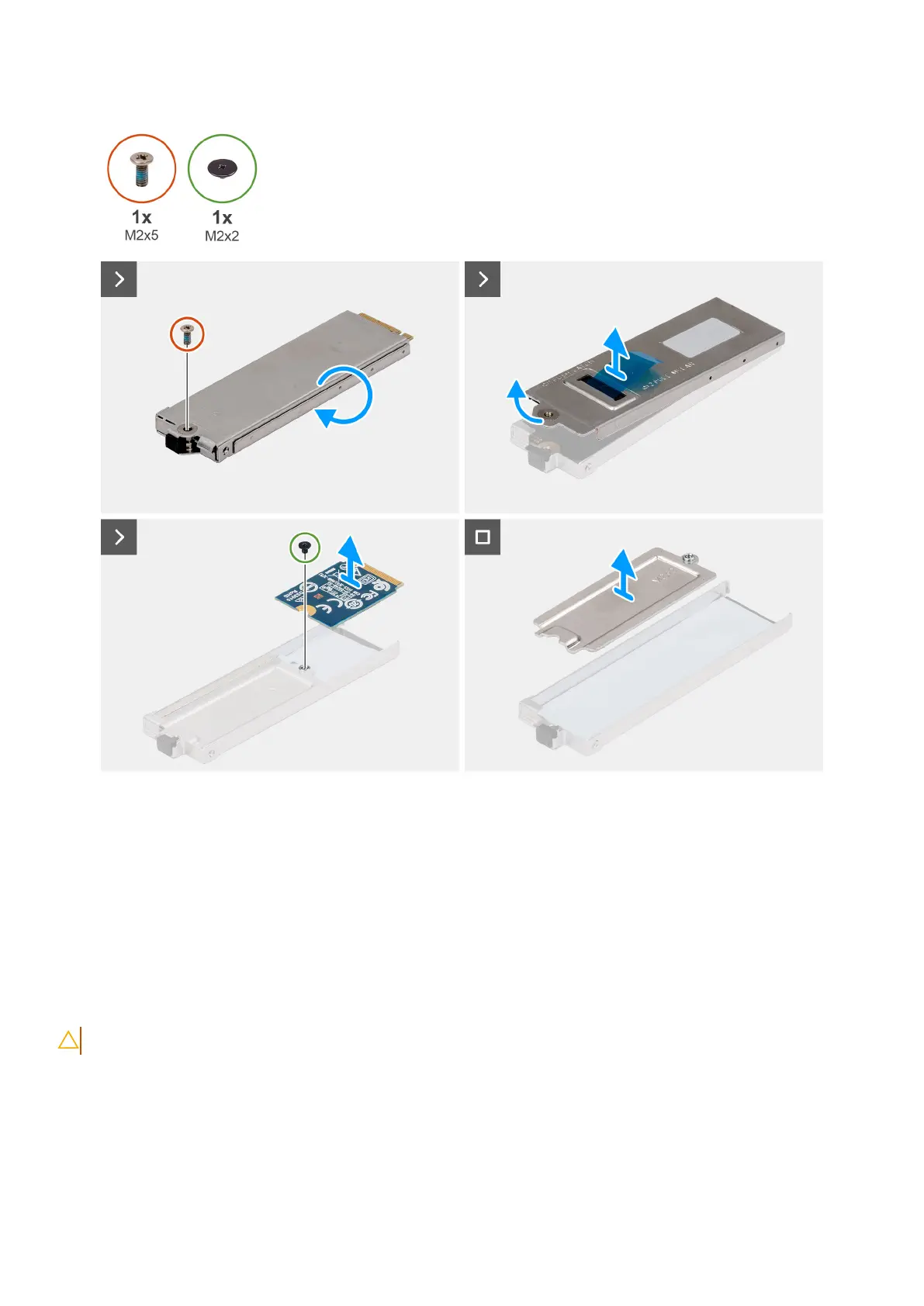 3. Remove the (M2x2) screw that secures the M.2 2230 solid state drive to the SSD carrier.