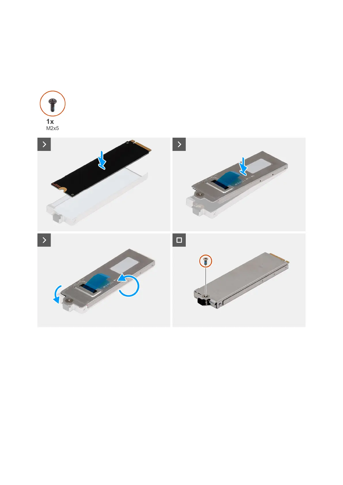 4. Replace the (M2x5) screw to secure the SSD carrier cover to the SSD carrier.