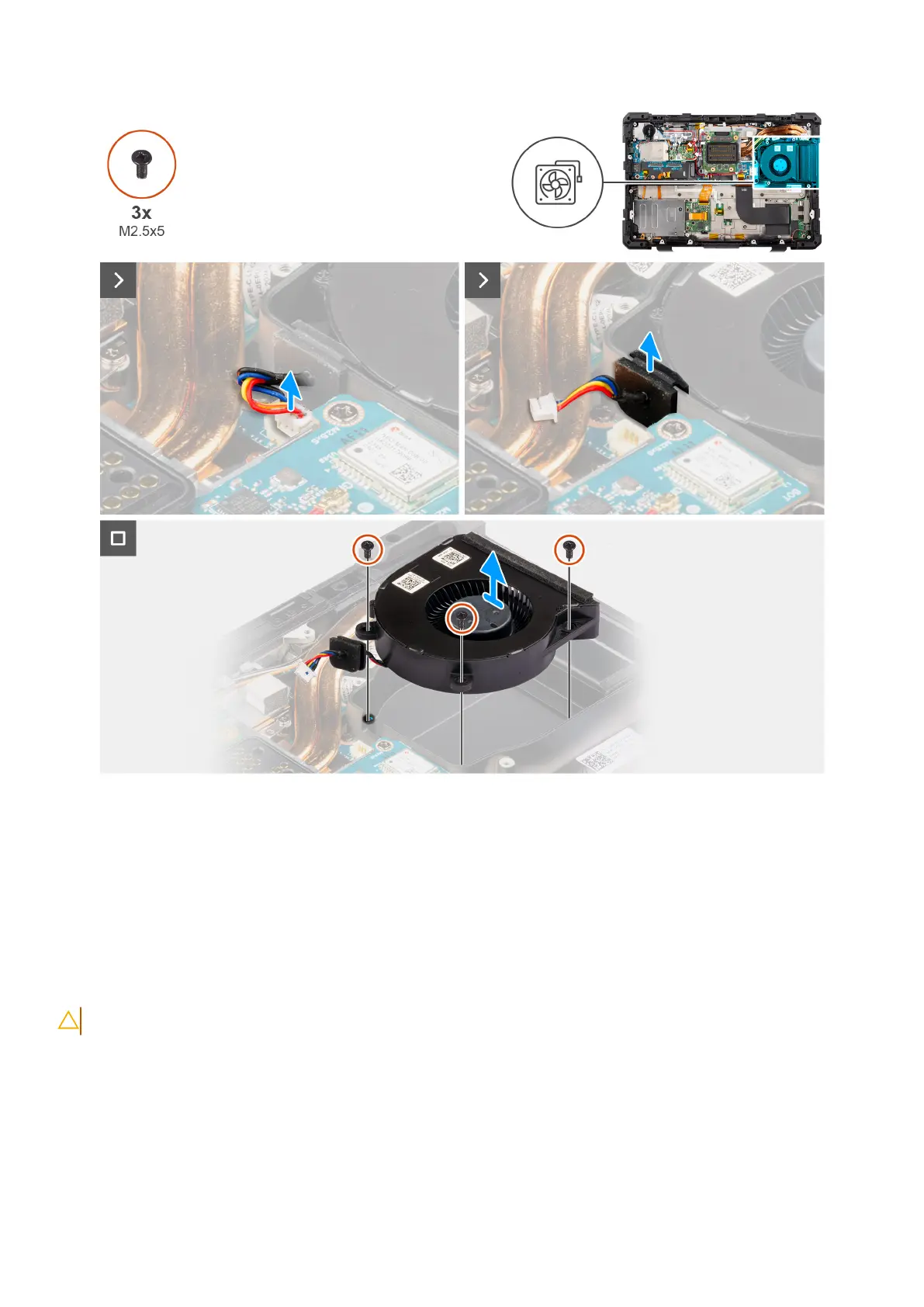 3. Remove the three (M2.5x5) screws that secure the fan to the computer chassis.