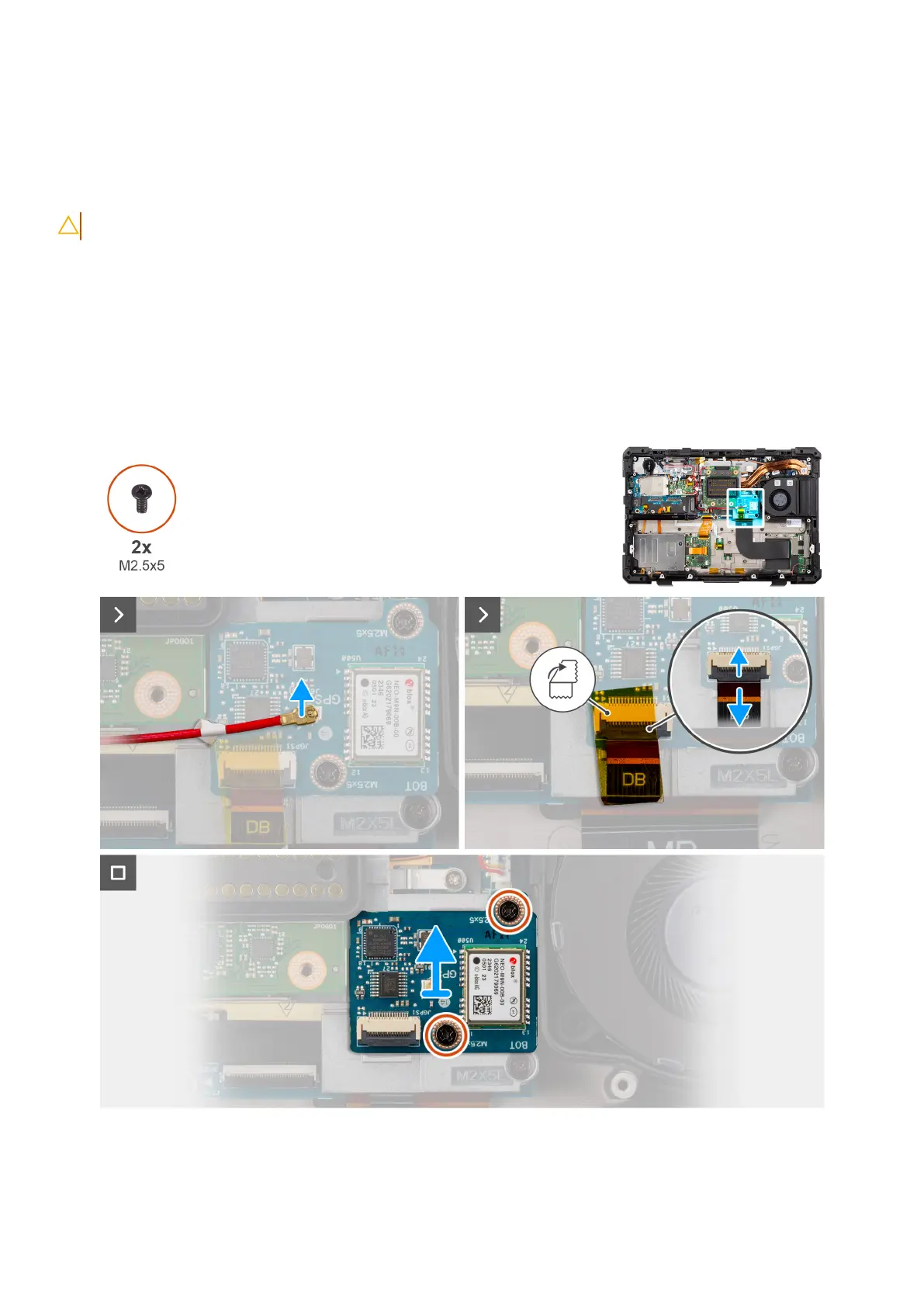 The following image indicates the location of the GPS board and provides a visual representation of the removal procedure.