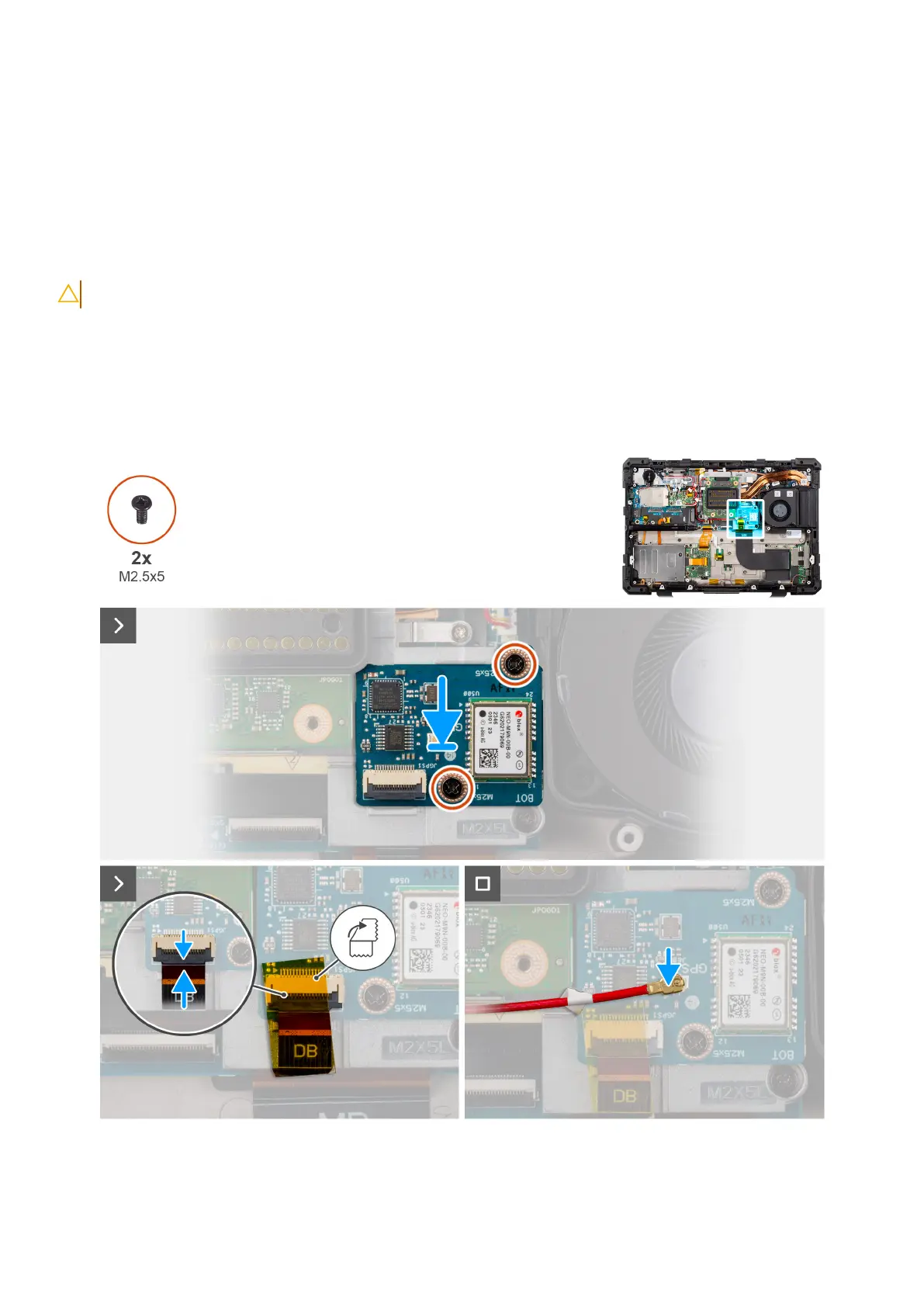 3. Remove the two (M2.5x5) screws that secure the GPS board to the computer chassis.