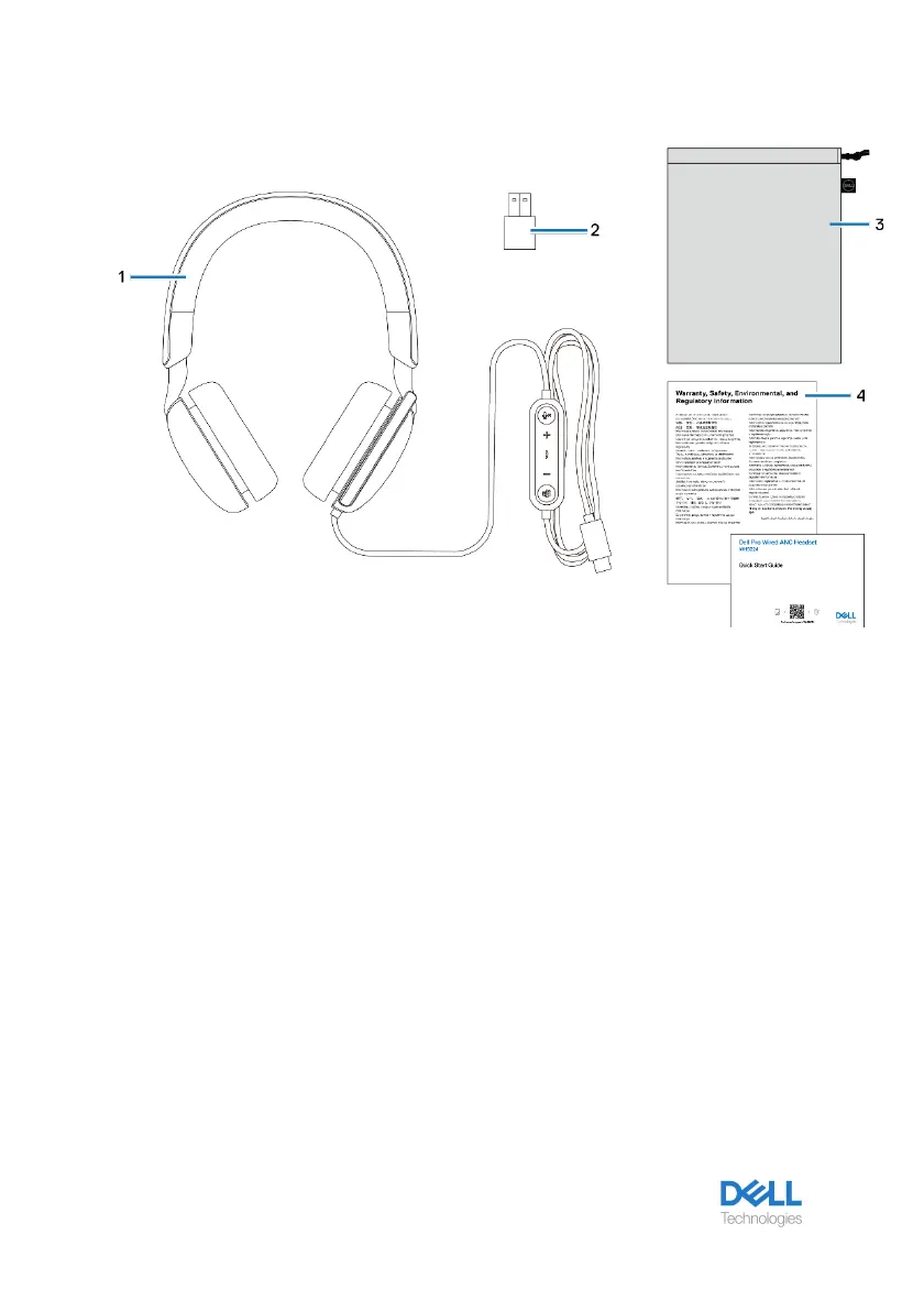 1. WH5024 Headset 2. USB-A adapter (drop in box)