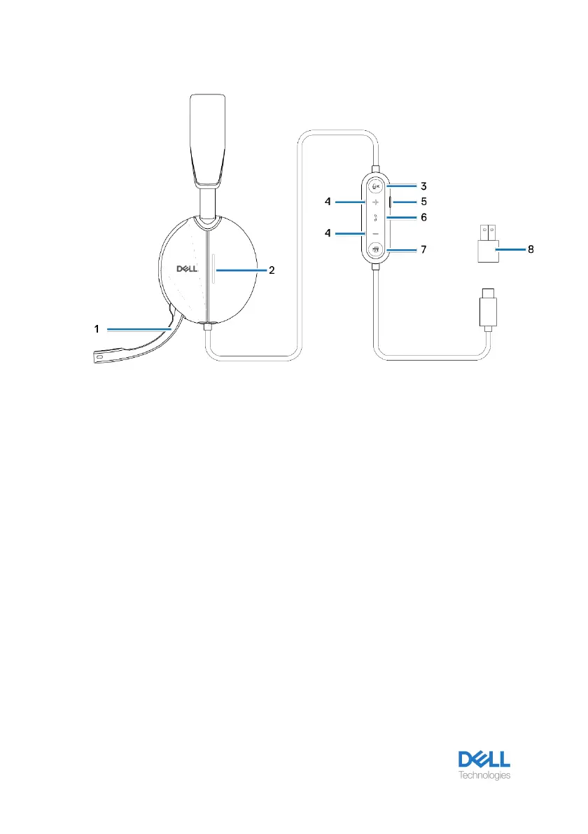 7. Microsoft Teams button with LED 8. USB-A adapter