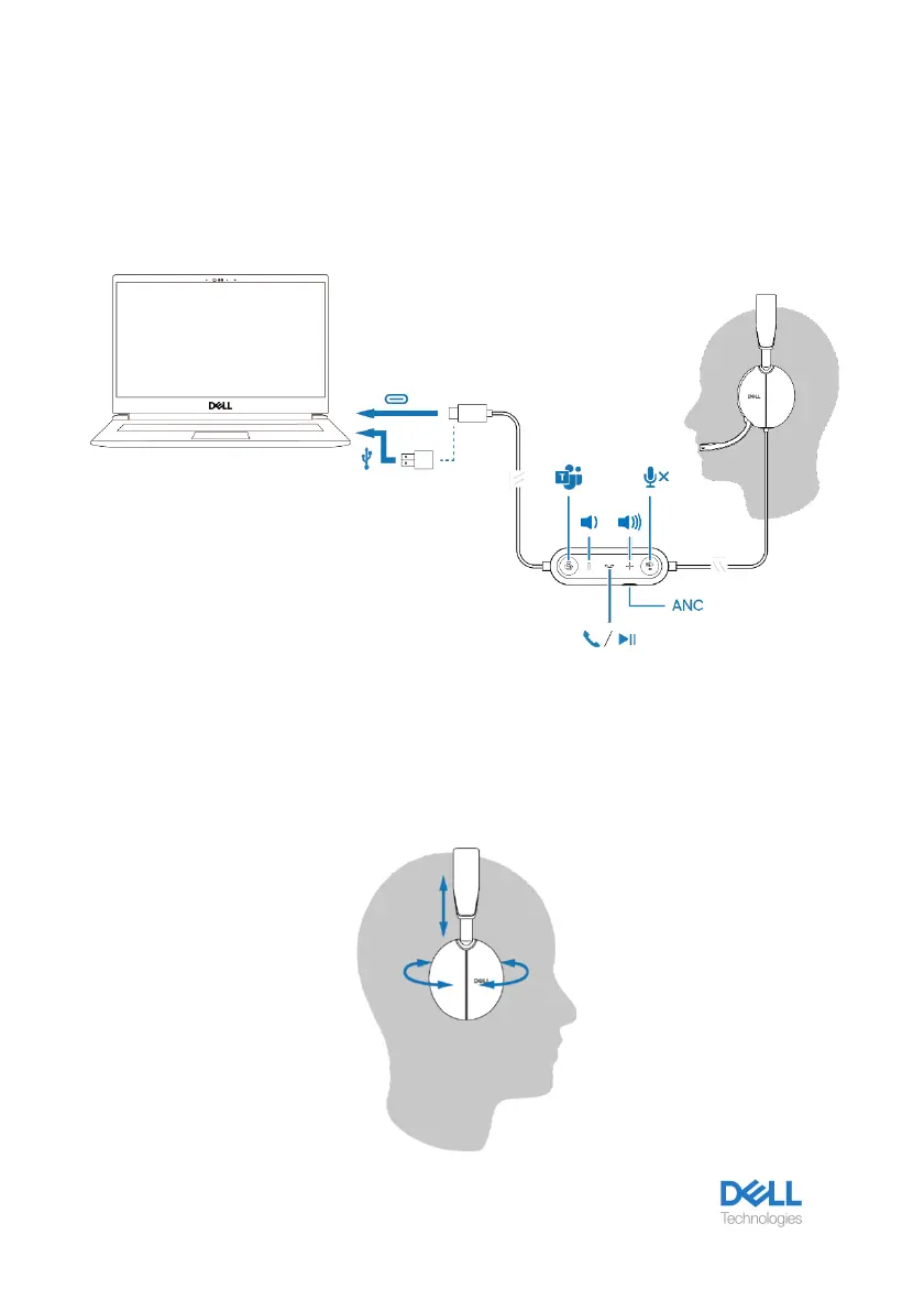 Dell Pro WH5024 - Headset Setup; Power and setup; Adjust the headband