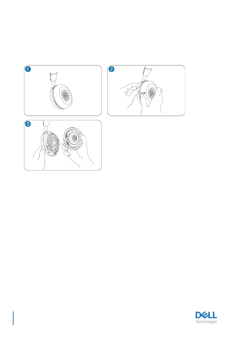 Hold the headset earpiece and gently pull the ear cushion from the middle front.