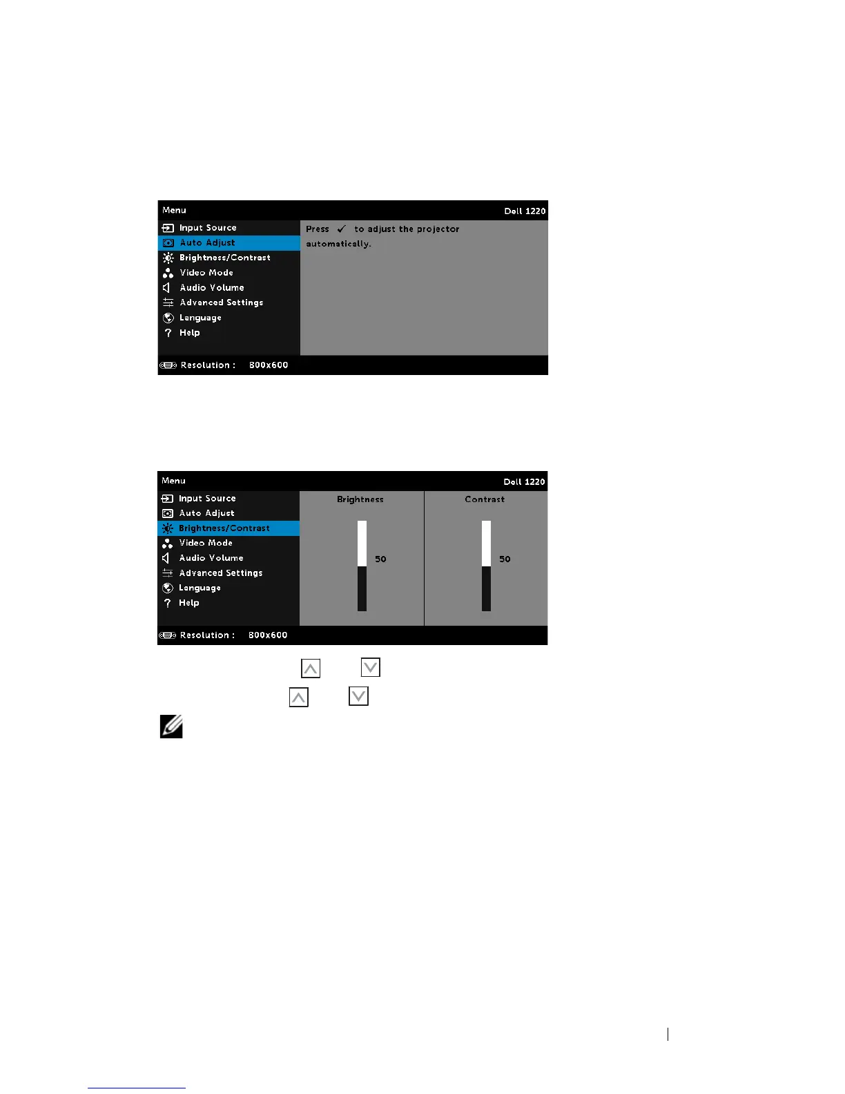 BRIGHTNESS—Use and to adjust the brightness of the image.