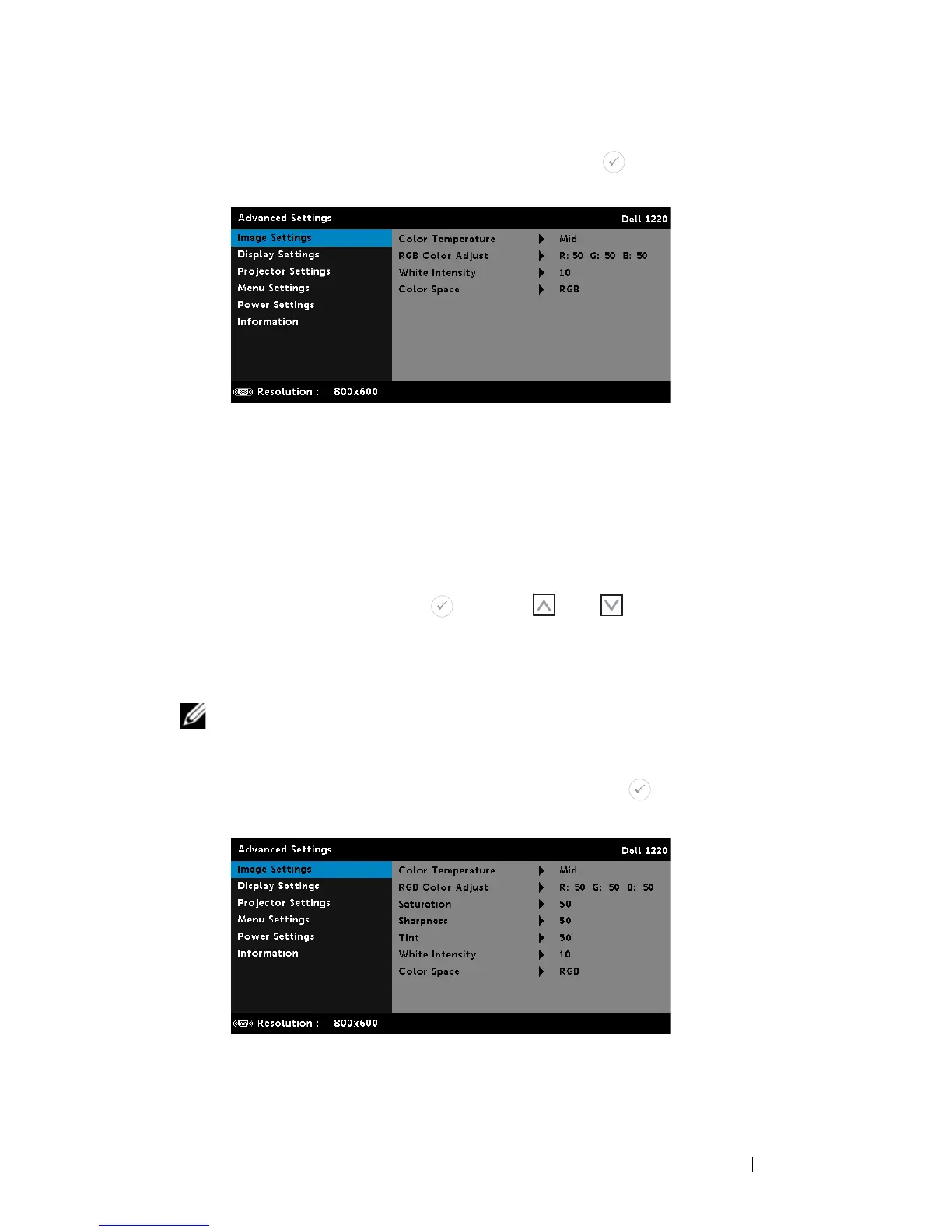 NOTE: If you adjust the settings for Color Temperature, RGB Color