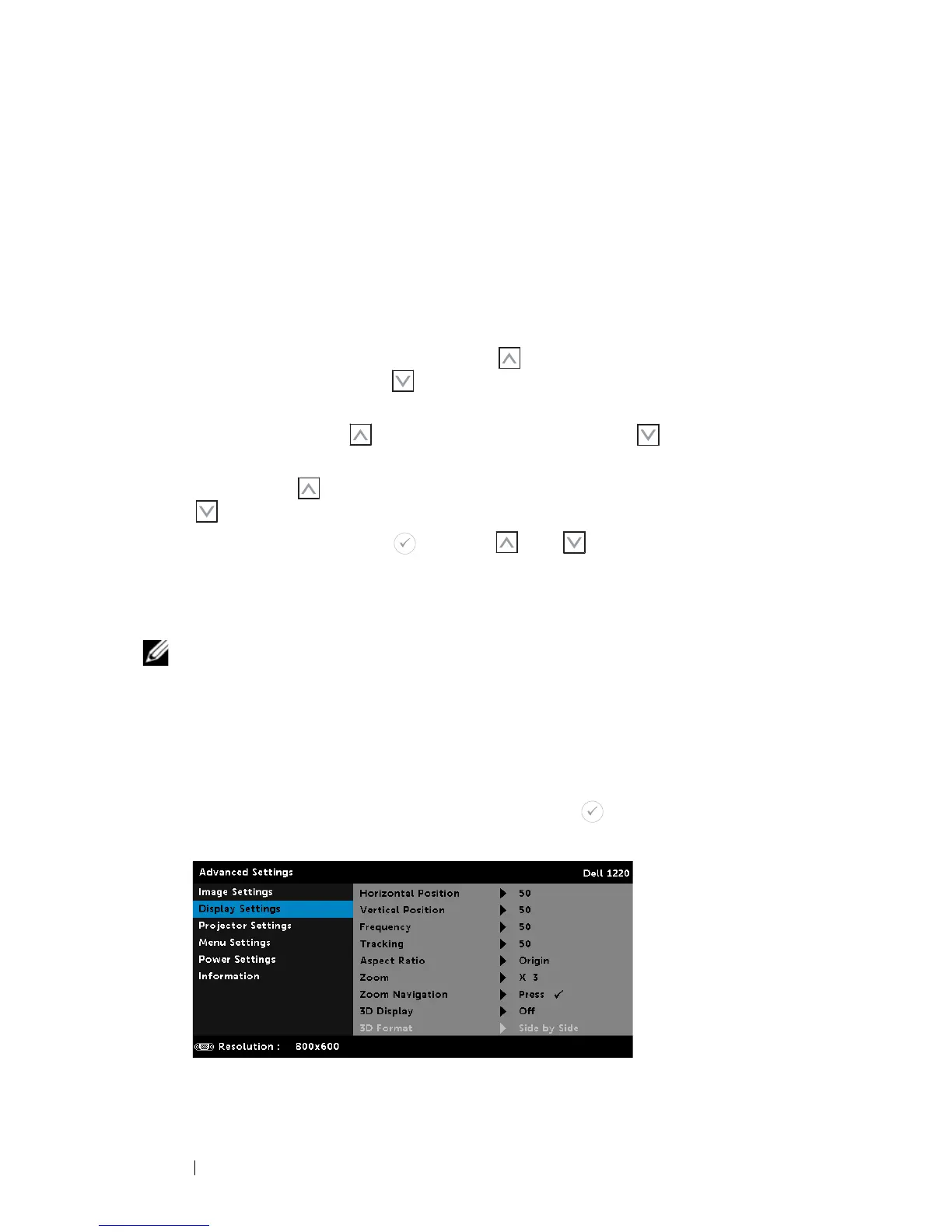 settings. The display settings menu provides the following options: